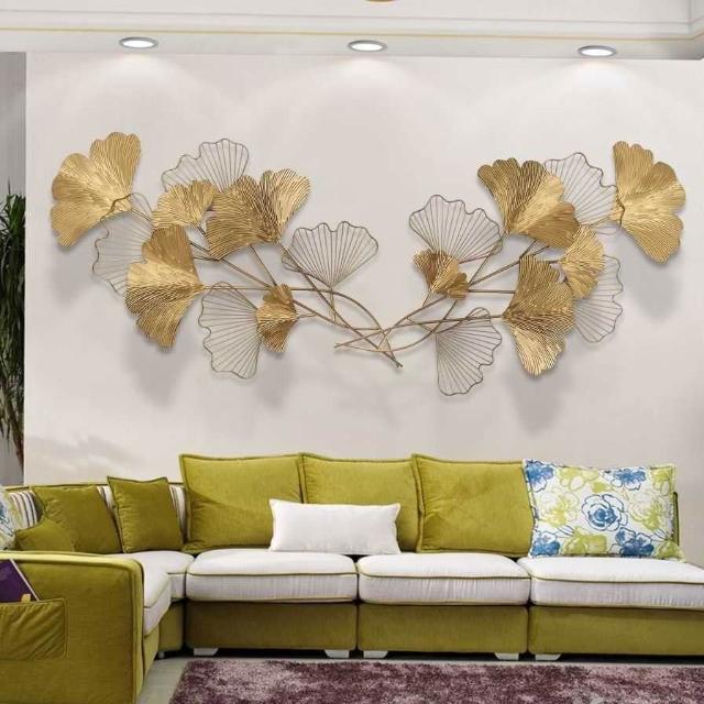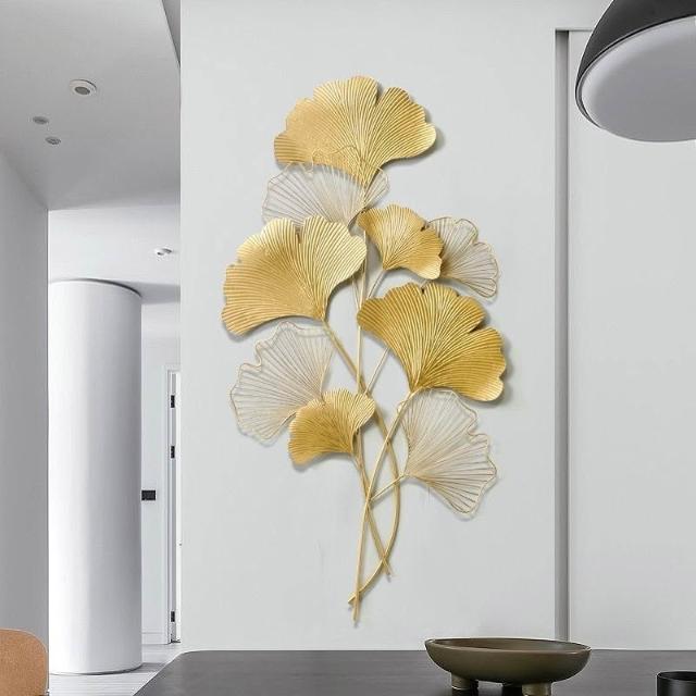 鐵藝壁飾 牆壁掛飾 牆上裝飾品 餐廳掛飾 金屬壁掛 電視沙發背景墻客廳臥室鐵藝銀杏葉墻飾玄關北歐墻壁掛件墻麵裝飾