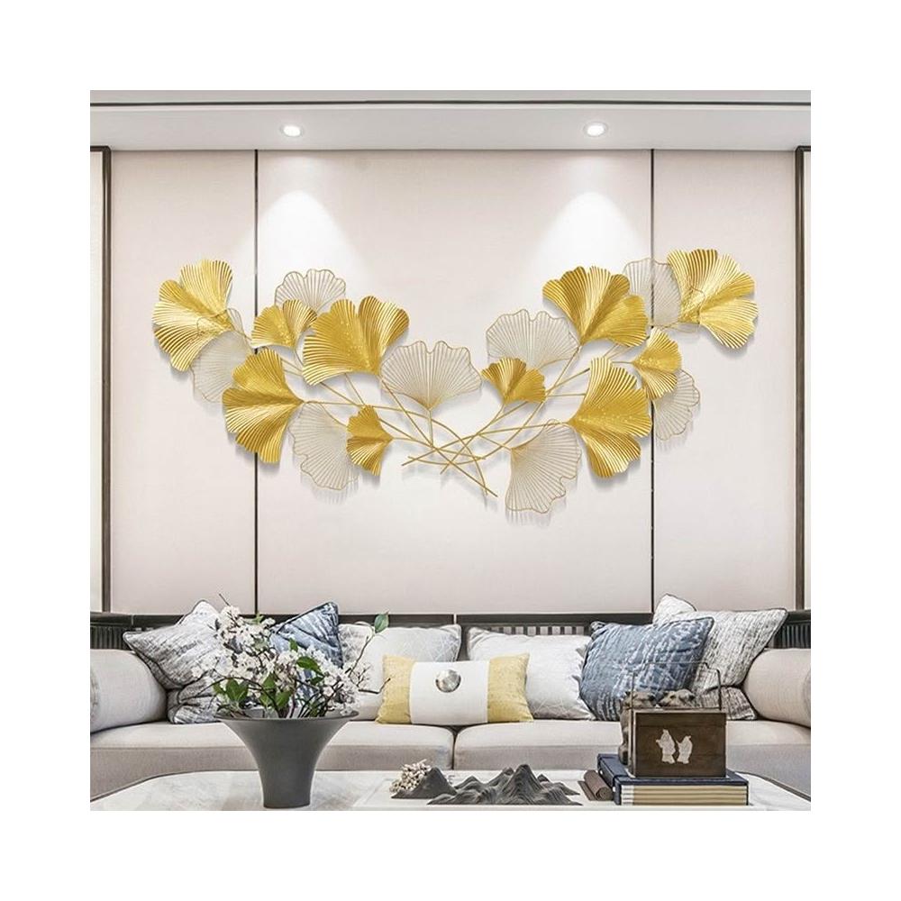鐵藝壁飾 牆壁掛飾 牆上裝飾品 餐廳掛飾 金屬壁掛 電視沙發背景墻客廳臥室鐵藝銀杏葉墻飾玄關北歐墻壁掛件墻麵裝飾