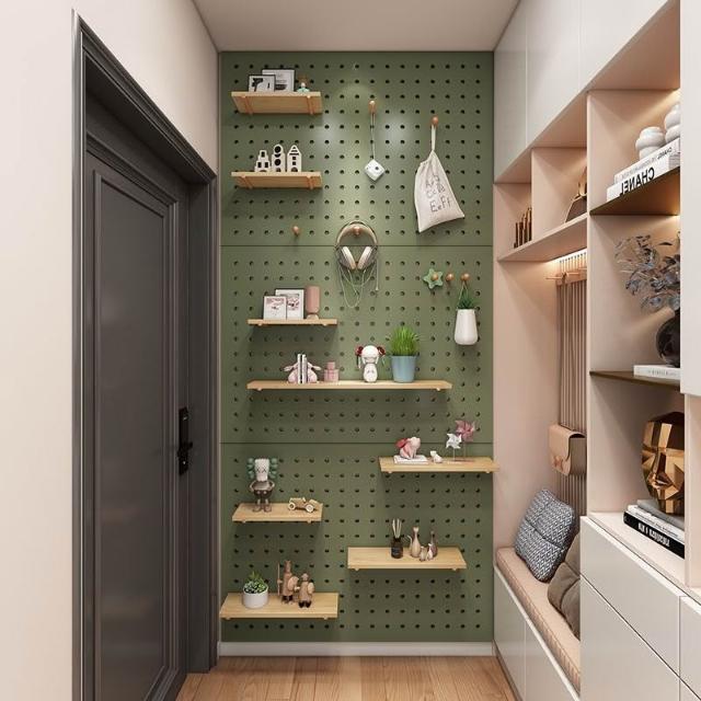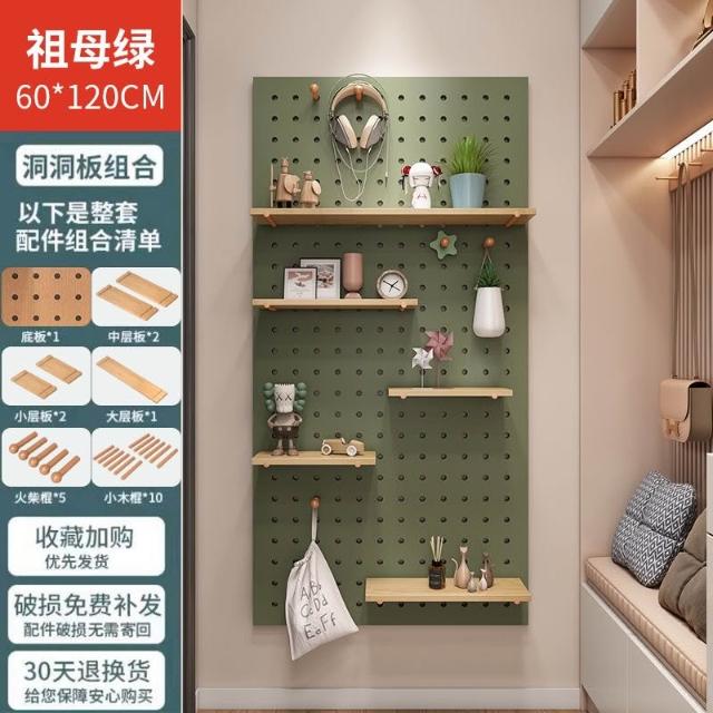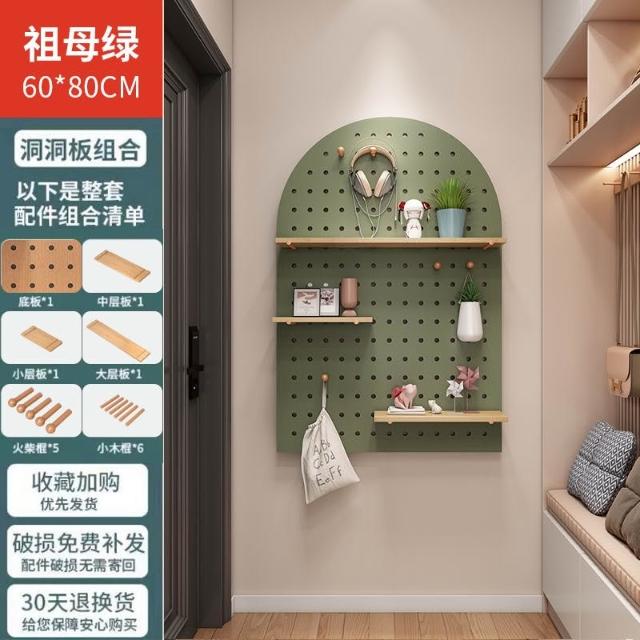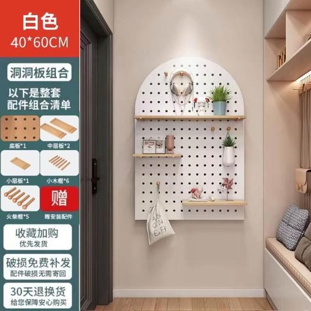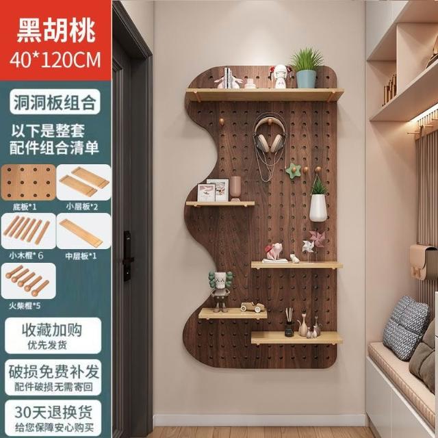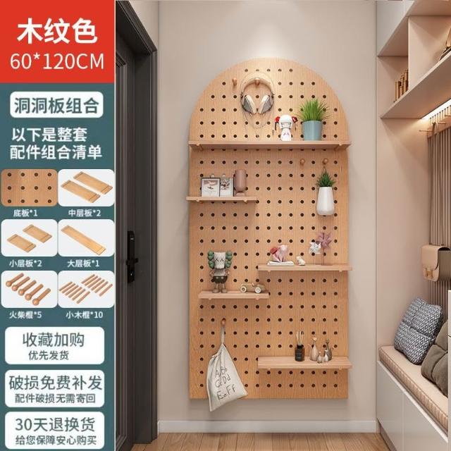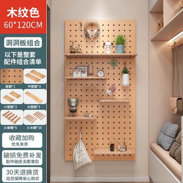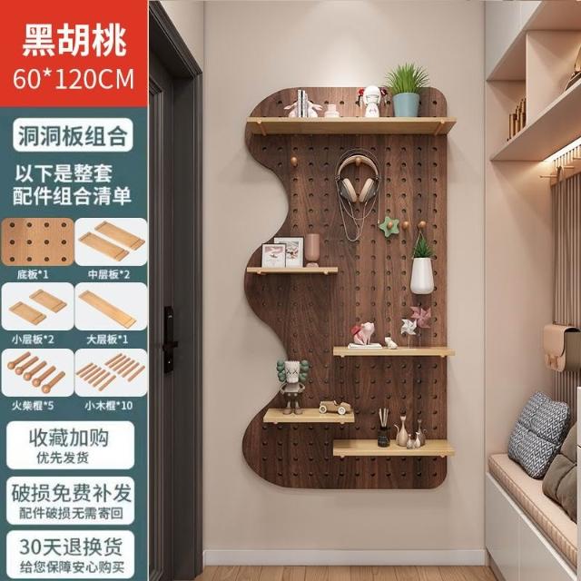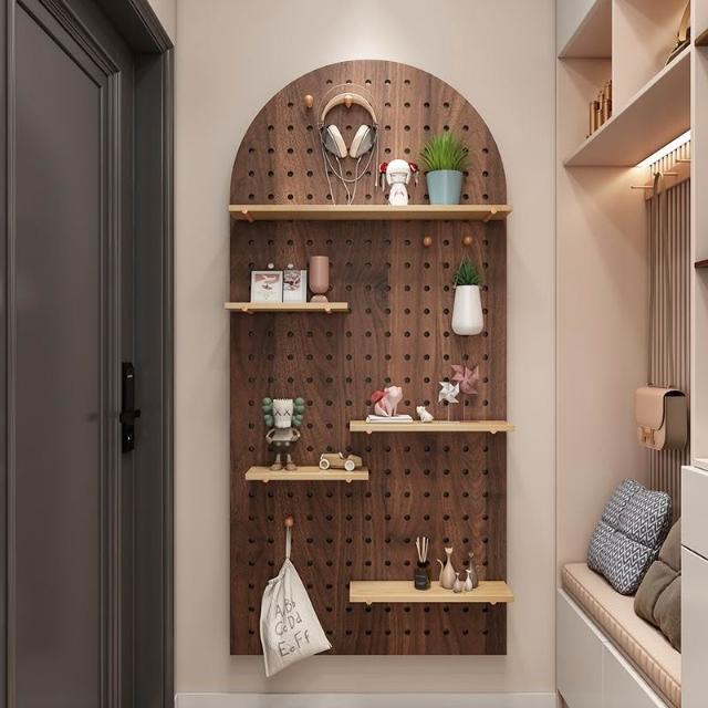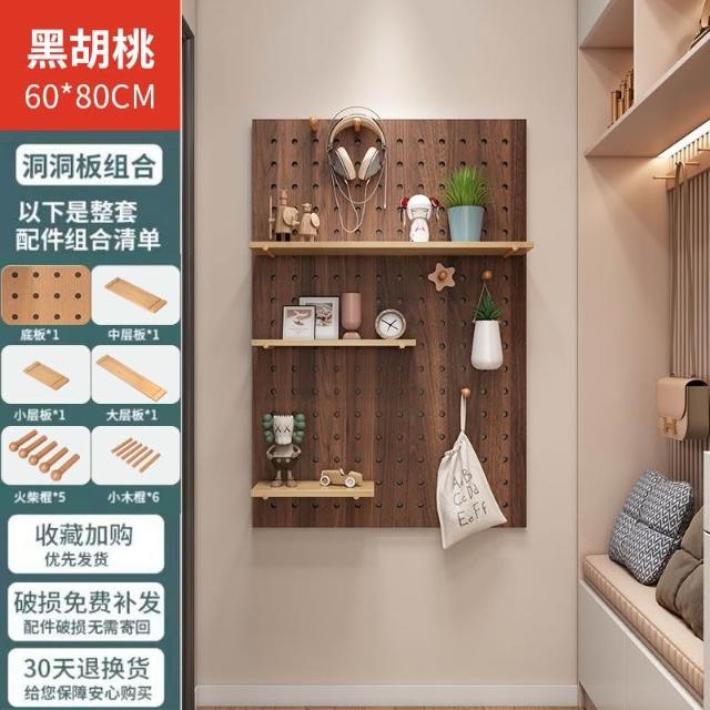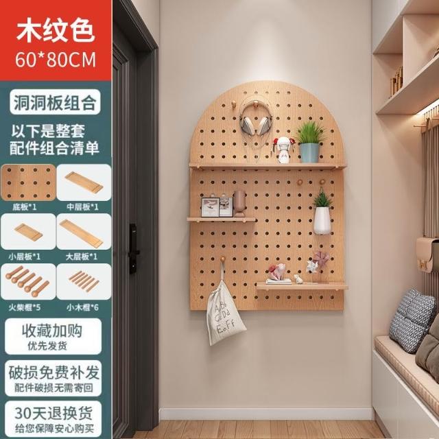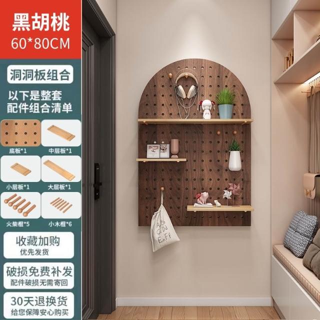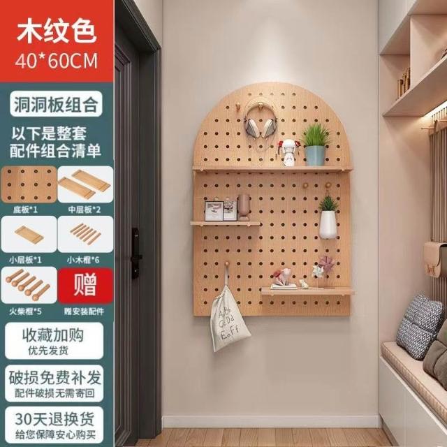 洞洞板置物架 玄關牆面置物架 牆上實木掛板 入戶隔板收納架 牆壁展示架 收納架 掛架 實木洞洞板置物架 收納架