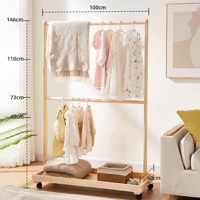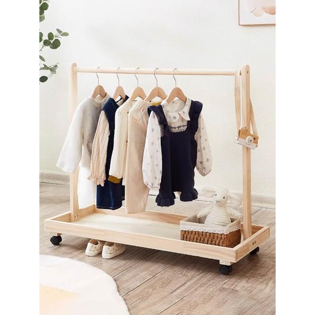 童裝衣架 直立式衣架掛衣桿 原木衣架桿 置衣架 兒童掛衣架移動式落地ㄇ架 實木幼嬰小衣架松木收納衣櫃幼兒園臨時放衣服架子