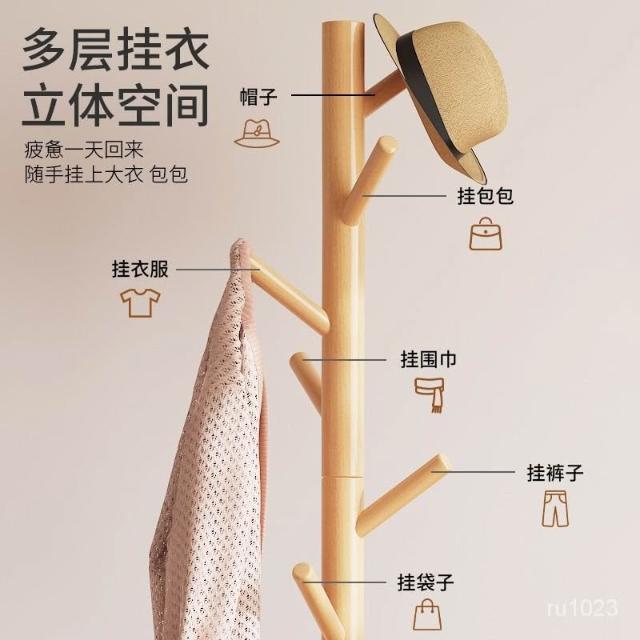 衣帽架 衣架落地立式掛外套掛衣架臥室內家用掛包架齣租屋衣帽架實木櫸木 6FO9