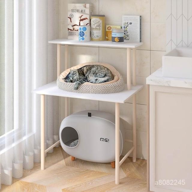 臺灣熱銷✨ 貓砂盆 置物架 陽臺貓爬架 小佩貓厠所 上方架子 貓盆架 貓窩收納架定製
