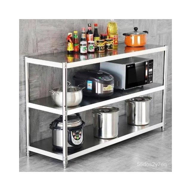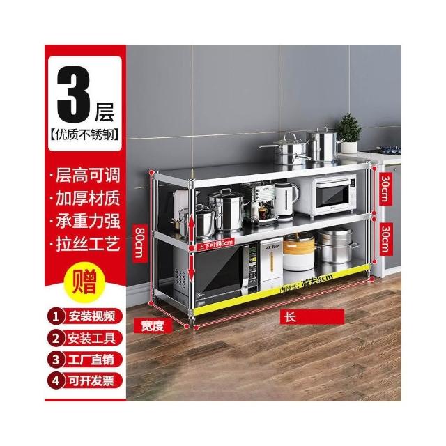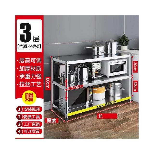 廚房不銹鋼置物架 三層落地多層式3層微波爐烤箱鍋架子 收納儲物架 置物架 鍋具收納架 廚房整理櫃 廚房雜物