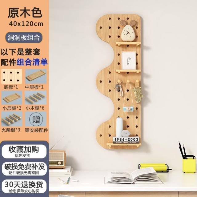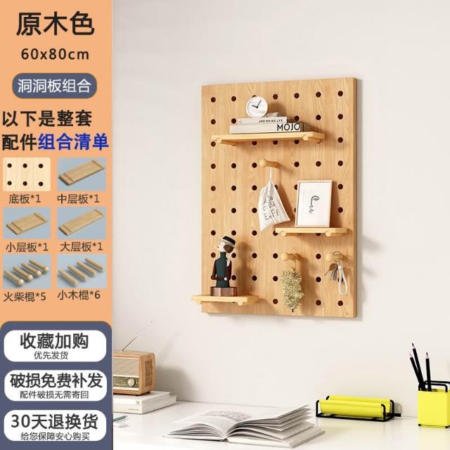 實木洞洞板入戶定製牆上置物架牆壁掛牆書房書架隔板掛板牆面架