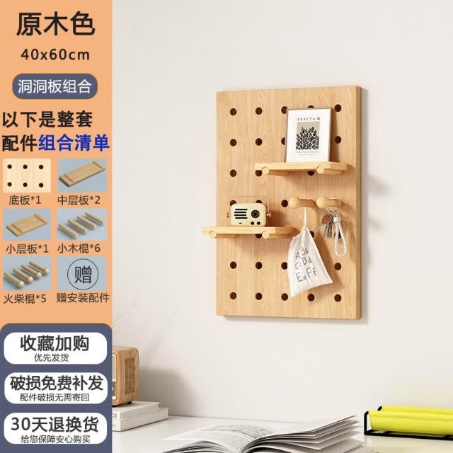 實木洞洞板入戶定製牆上置物架牆壁掛牆書房書架隔板掛板牆面架