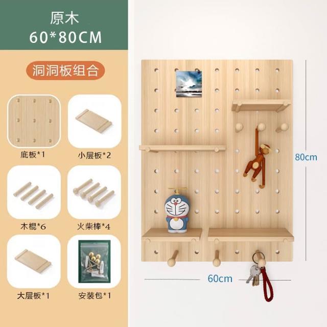 實木洞洞板定製入戶牆上置物架木質牆壁掛板書架隔板收納架牆面架