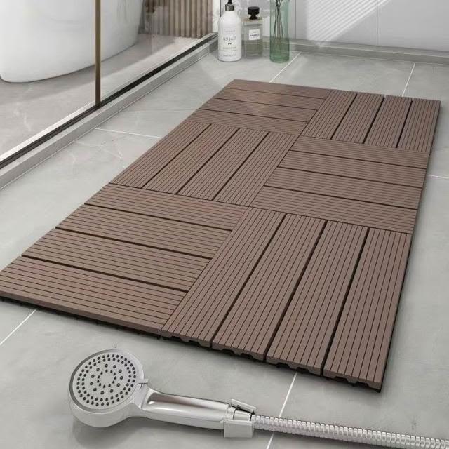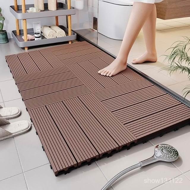 木質地板 塑木地板 浴室地板 防滑陽臺地板 木頭地板 浴室防滑墊洗澡衛生間地墊加高防摔墊增高地墊隔水衛生間滿鋪排水