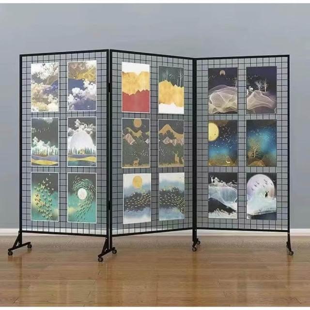 折疊款鐵藝網格網架 畫展畫室幼兒園作品展示架 可移動擺攤專用美術架