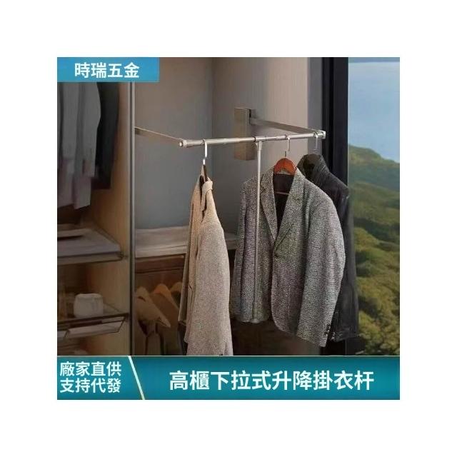 下拉式掛衣桿可伸縮掛衣器 家用下拉拉桿衣帽間柜內緩衝升降掛衣架