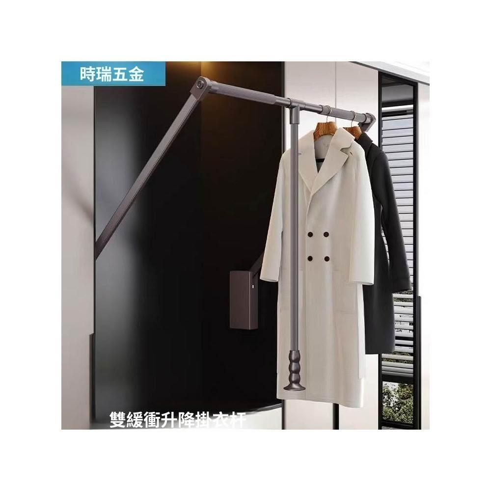 下拉式掛衣桿可伸縮掛衣器 家用下拉拉桿衣帽間柜內緩衝升降掛衣架