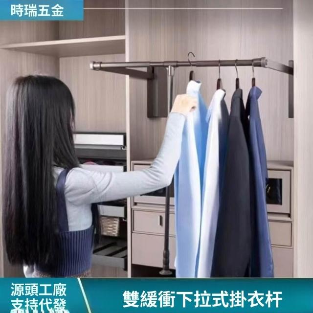 下拉式掛衣桿可伸縮掛衣器 家用下拉拉桿衣帽間柜內緩衝升降掛衣架