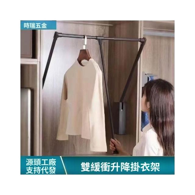 下拉式掛衣桿可伸縮掛衣器 家用下拉拉桿衣帽間柜內緩衝升降掛衣架