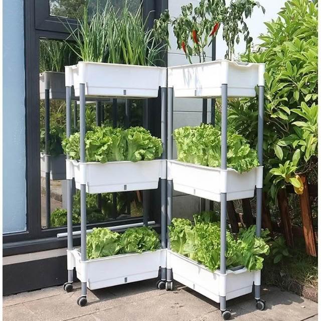 北歐家用陽台立式多層種植槽 多層種菜加厚帶儲水層長方形塑料花盆