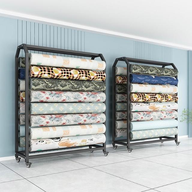 紡織面料展示架 布匹布卷陳列架貨架 桌布布料展架 移動皮革中島架子