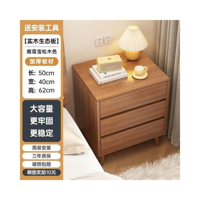 免運 實木床頭櫃臥室家用現代簡約床邊窄三層加高小型置物儲物收納櫃子 BY3P