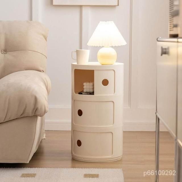 圓形收納櫃多層圓柱形床頭櫃妝品收納茶幾小戶型ins風臥室儲物櫃