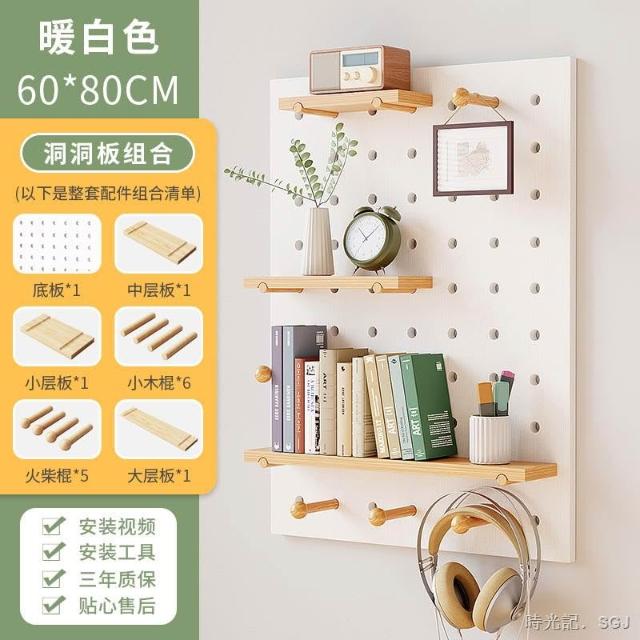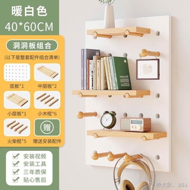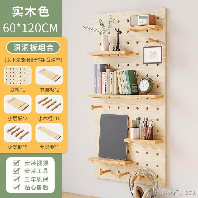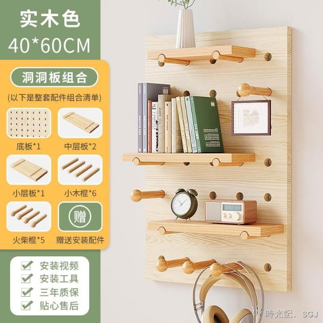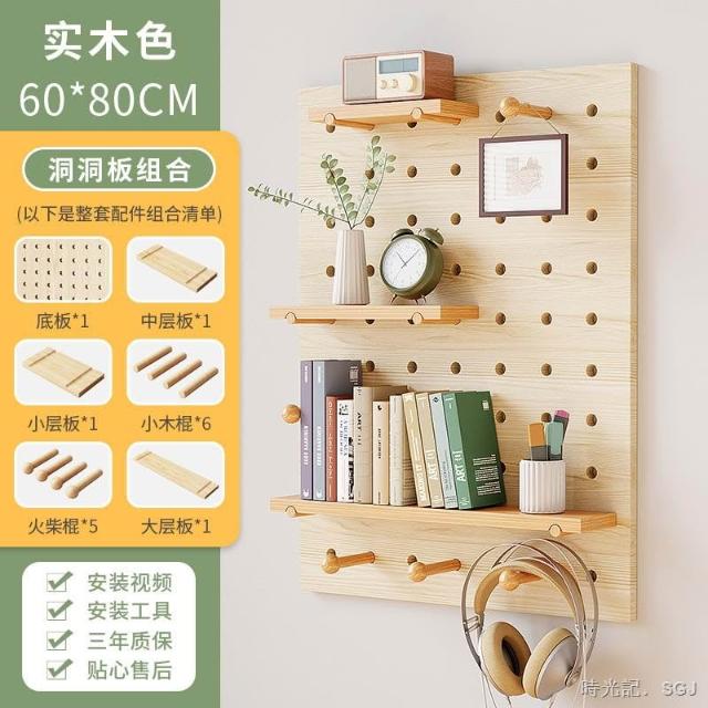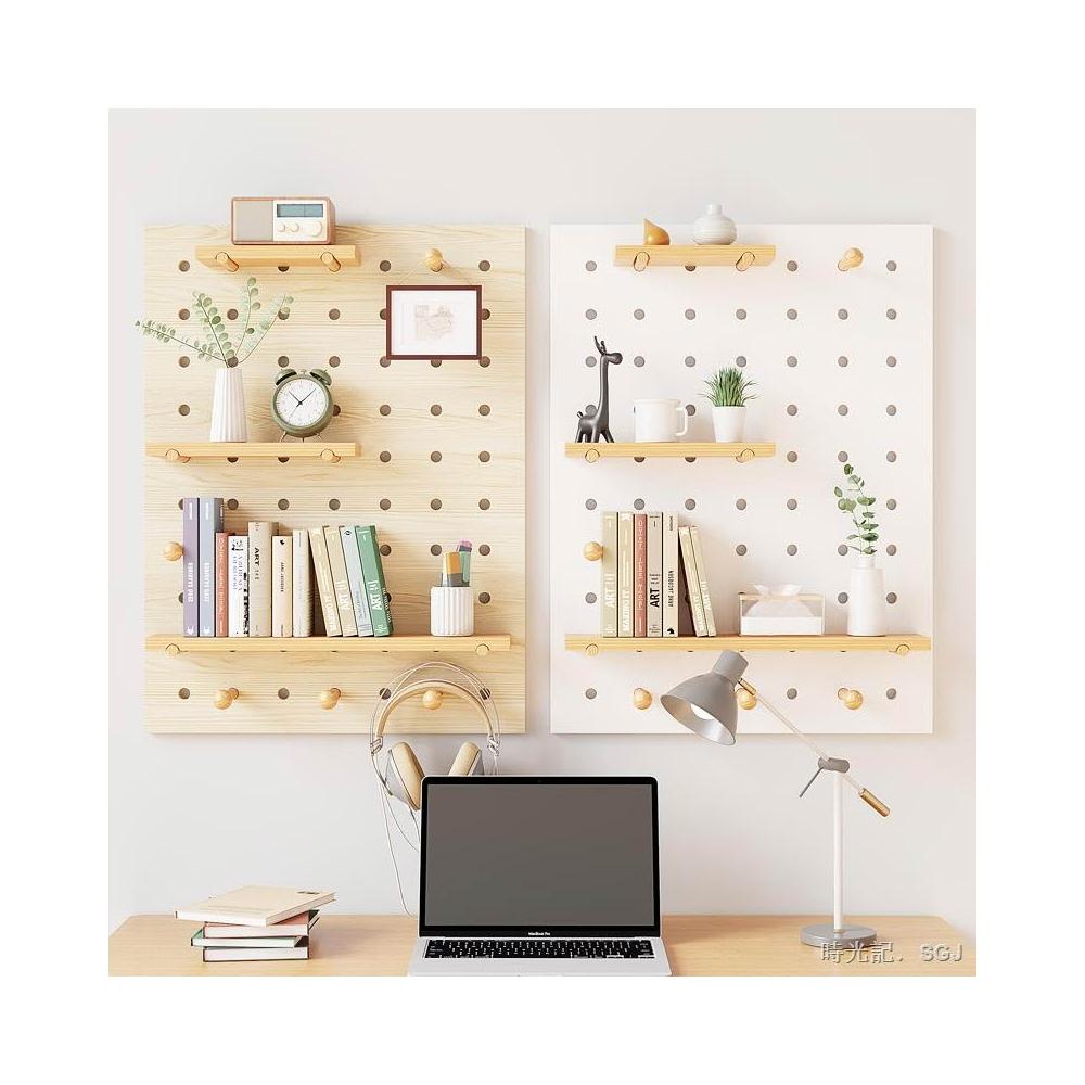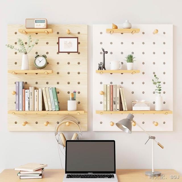 限量特價 洞洞板實木墻上置物架木質展示架墻壁掛墻書架掛板墻面隔板收納架