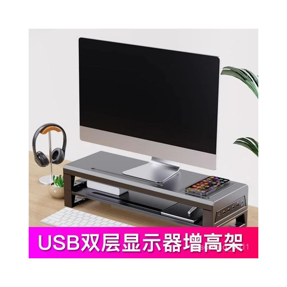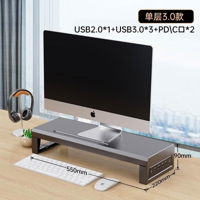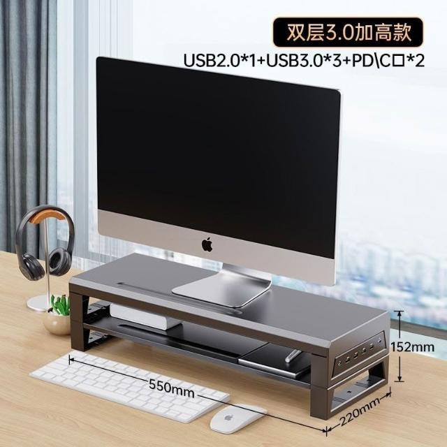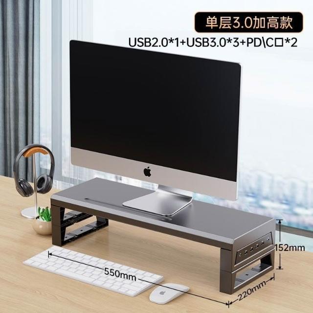 優品 電腦顯示器增高架 多功能USB擴展辦公桌麵支架 顯示器增高架 電腦屏幕增高架 桌麵收納架 桌麵置物架 螢幕架