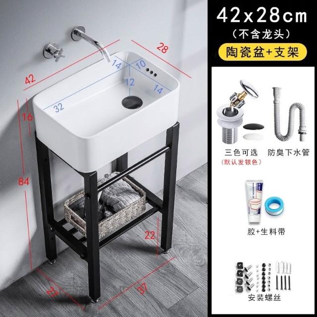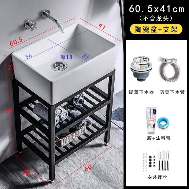 免運破損包賠 新款無龍頭孔洗手盆落地式洗臉盆簡易不帶龍頭孔一體陶瓷掛盆家用 落地洗手台 浴室簡易水槽 戶外洗手槽
