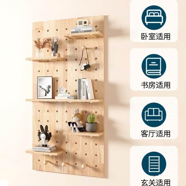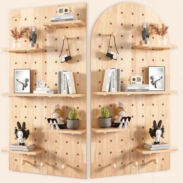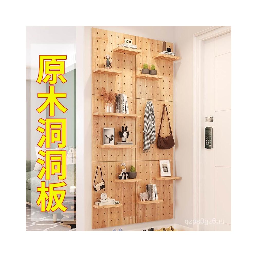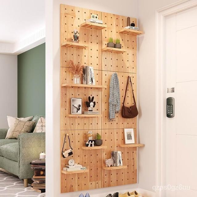 實木洞洞闆 定製墻上置物架 掛闆書架入戶玄關 木質裝飾隔墻麵收納架