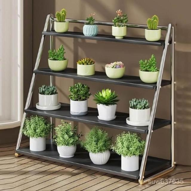 免運含稅😊不銹鋼花架置物架陽臺2024戶外鐵藝階梯多層花盆架客廳落地花架子 花架
