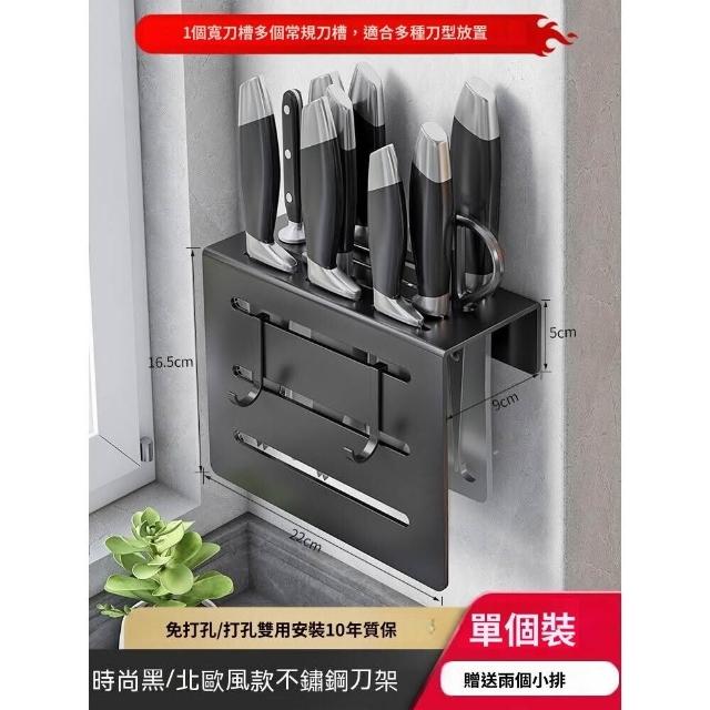 不銹鋼槍灰廚房菜刀收納置物架 單獨刀架 壁掛式免打孔 放刀具刀架子
