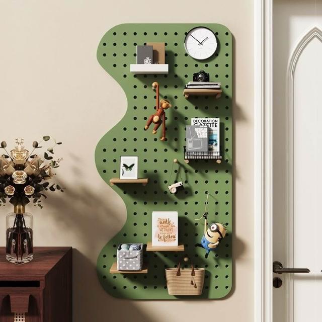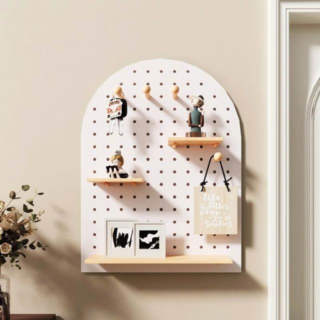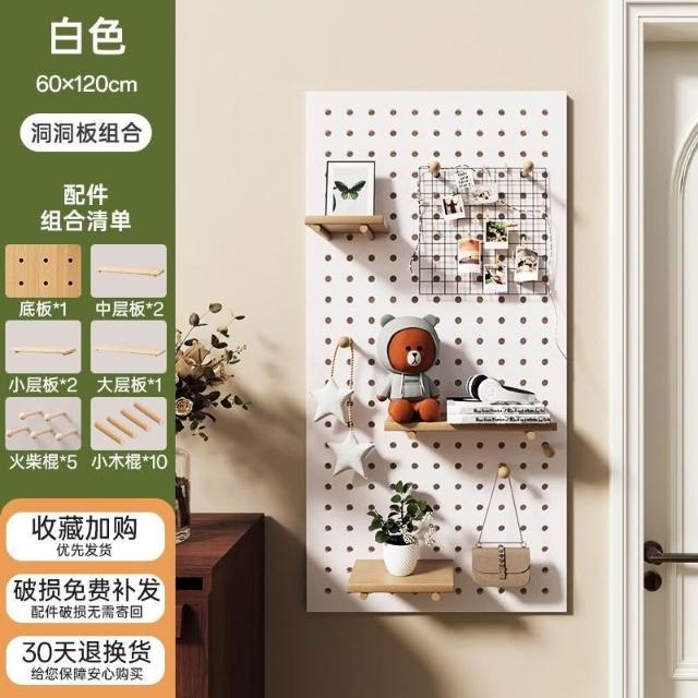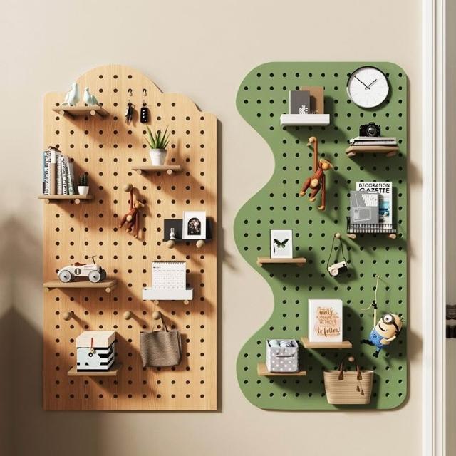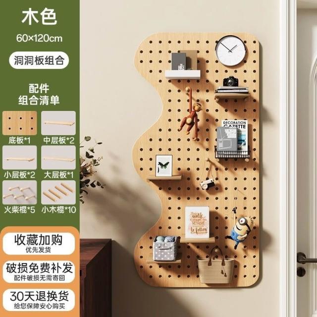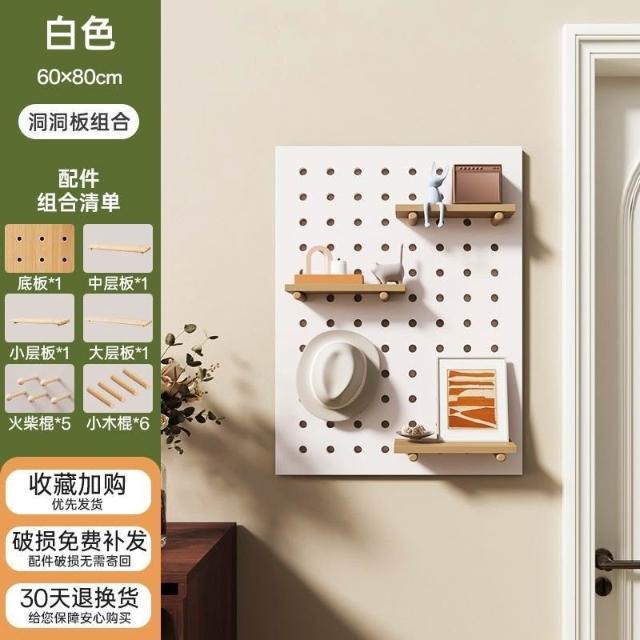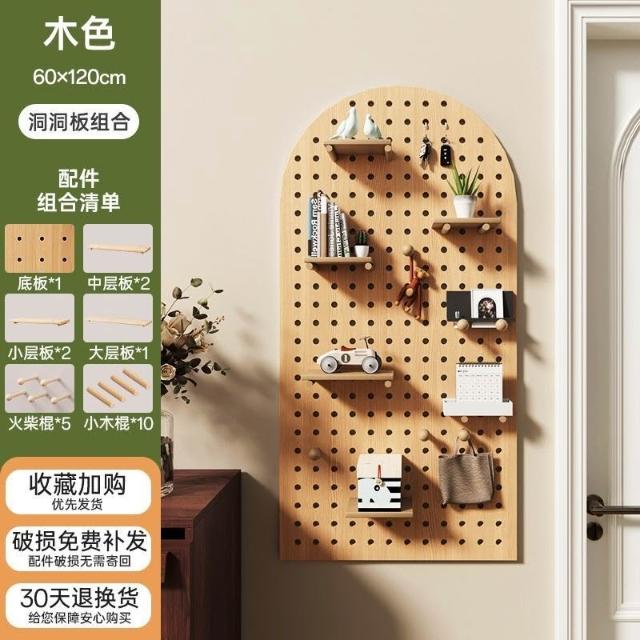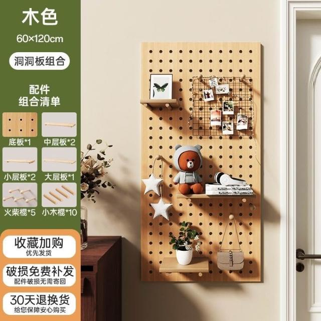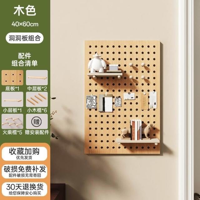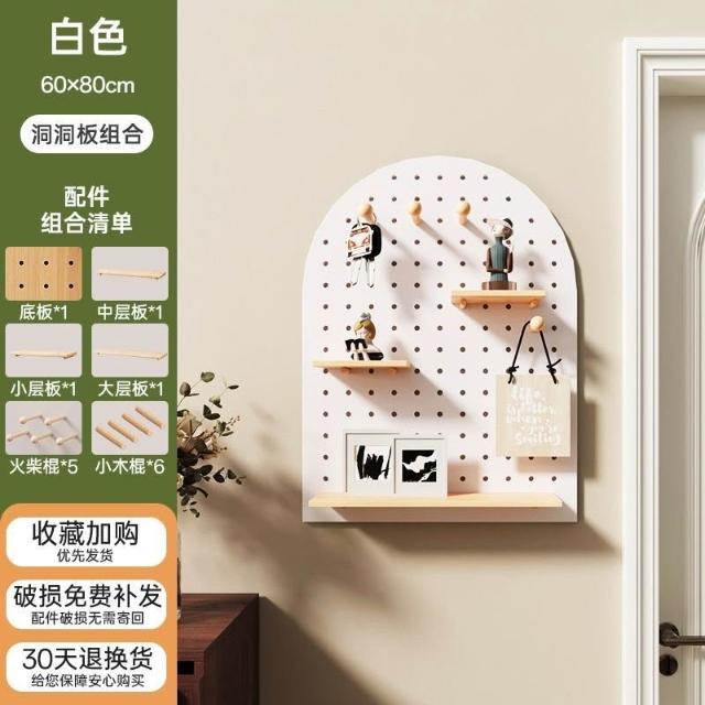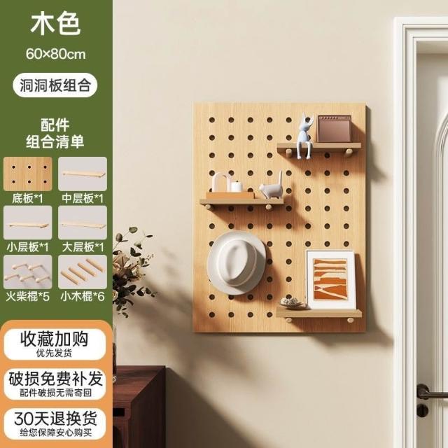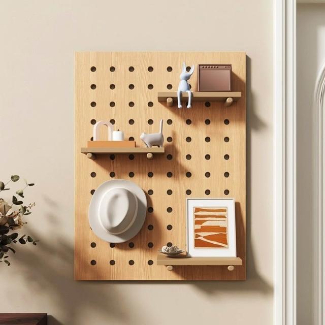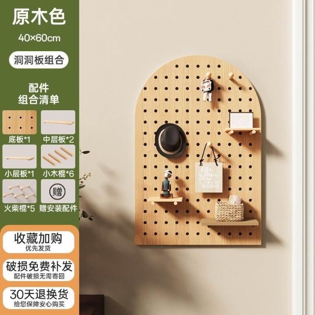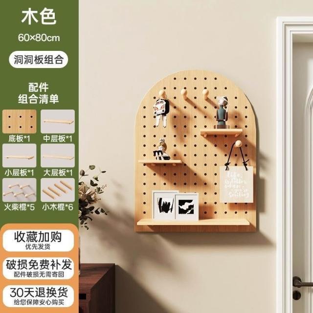 可定製 洞洞板牆面置物架實木入戶玄關墻上免漆板定製收納架