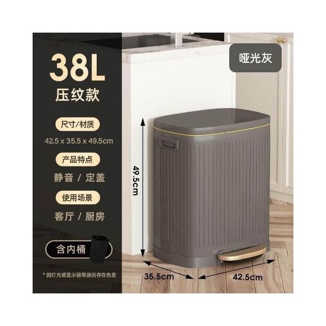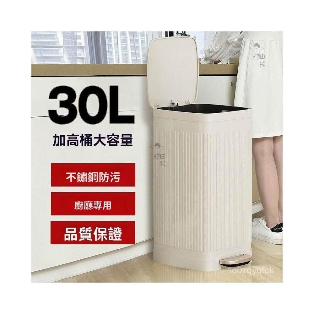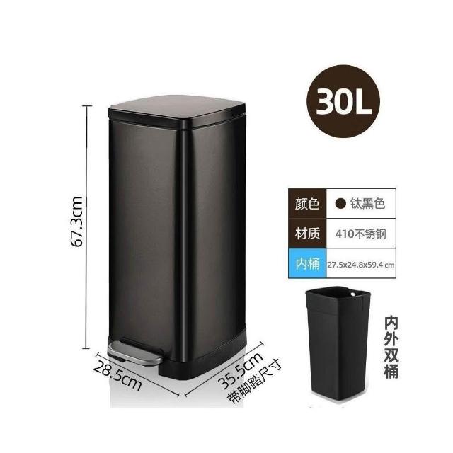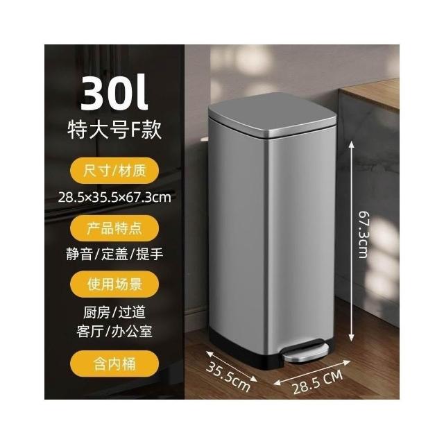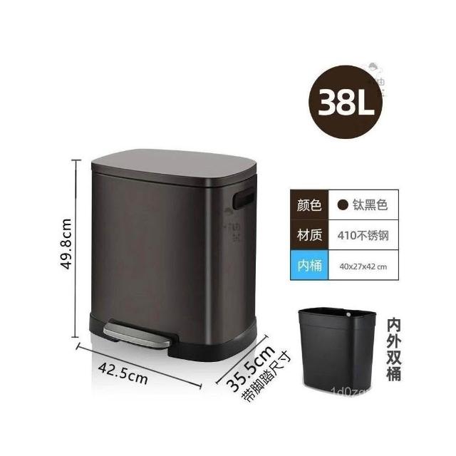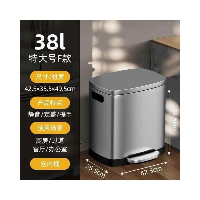 不銹鋼垃圾桶 夾縫垃圾桶 腳踏式不銹鋼垃圾桶大容量廚房家用30L酒店公共大號38L防水帶蓋桶 4HX1