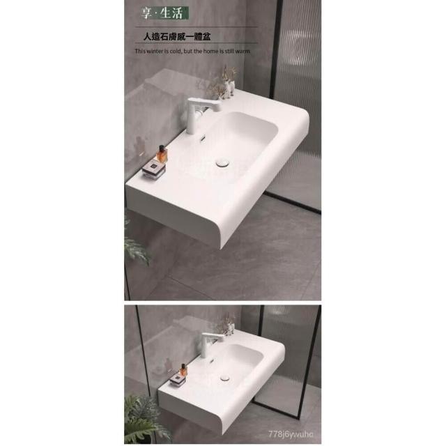 限時特價🔥 奶油風可麗耐膚感一體單盆人造石洗手盆洗臉盆洗漱臺一體盆 洗手盆 掛牆式洗手盆 小陽臺水池 洗臉盆 臺盆 7A