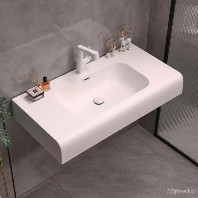 限時特價🔥 奶油風可麗耐膚感一體單盆人造石洗手盆洗臉盆洗漱臺一體盆 洗手盆 掛牆式洗手盆 小陽臺水池 洗臉盆 臺盆 7A