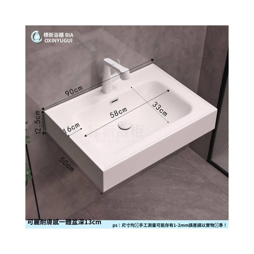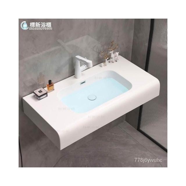 限時特價🔥 奶油風可麗耐膚感一體單盆人造石洗手盆洗臉盆洗漱臺一體盆 洗手盆 掛牆式洗手盆 小陽臺水池 洗臉盆 臺盆 7A