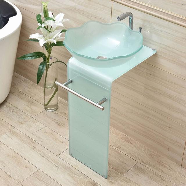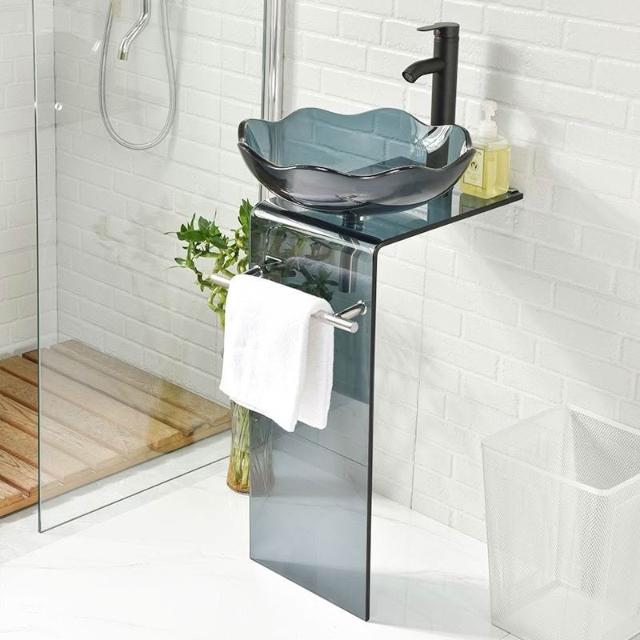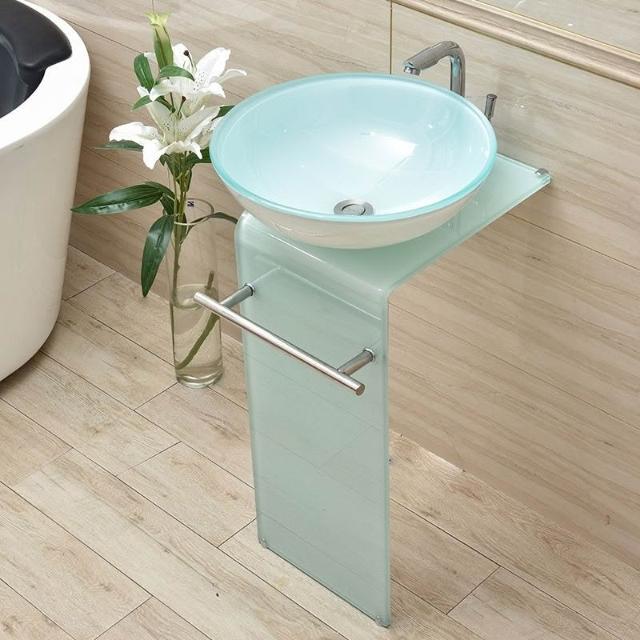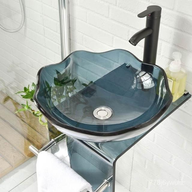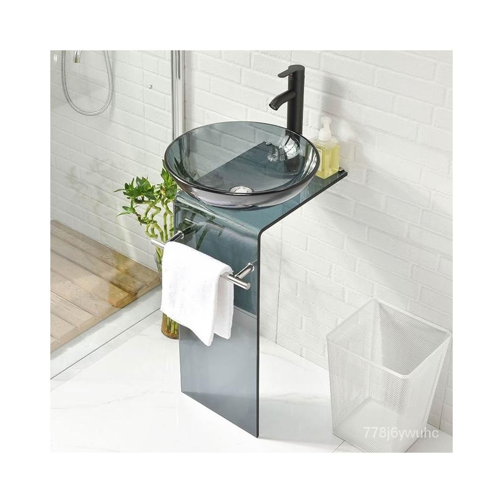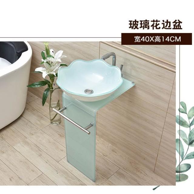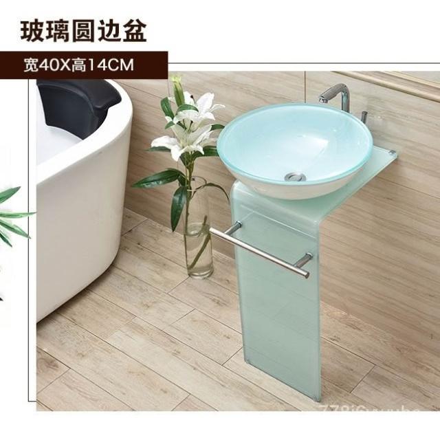 限時特價🔥衛生間洗麵盆組閤陽臺小戶型玻璃洗臉盆洗手臺簡易落地式洗漱臺盆 陶瓷麵盆 洗漱臺 浴櫃組閤 浴室洗臉盆 浴櫃