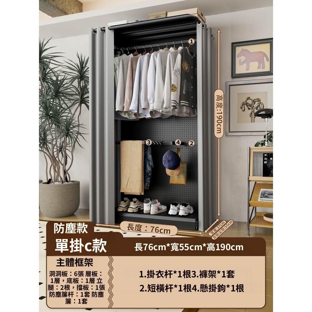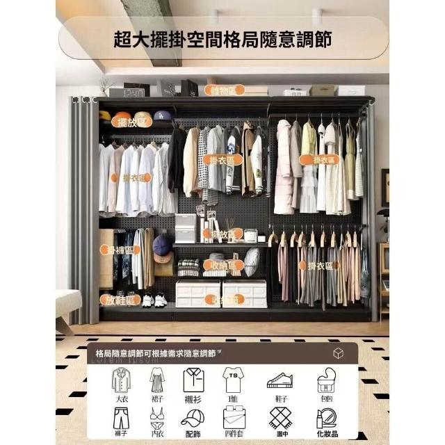 金屬衣櫃 洞洞板衣櫃 金屬衣帽間 洞洞板簡易組裝五金衣櫃金屬衣櫥開放式帶防塵簾開放式衣帽間少女