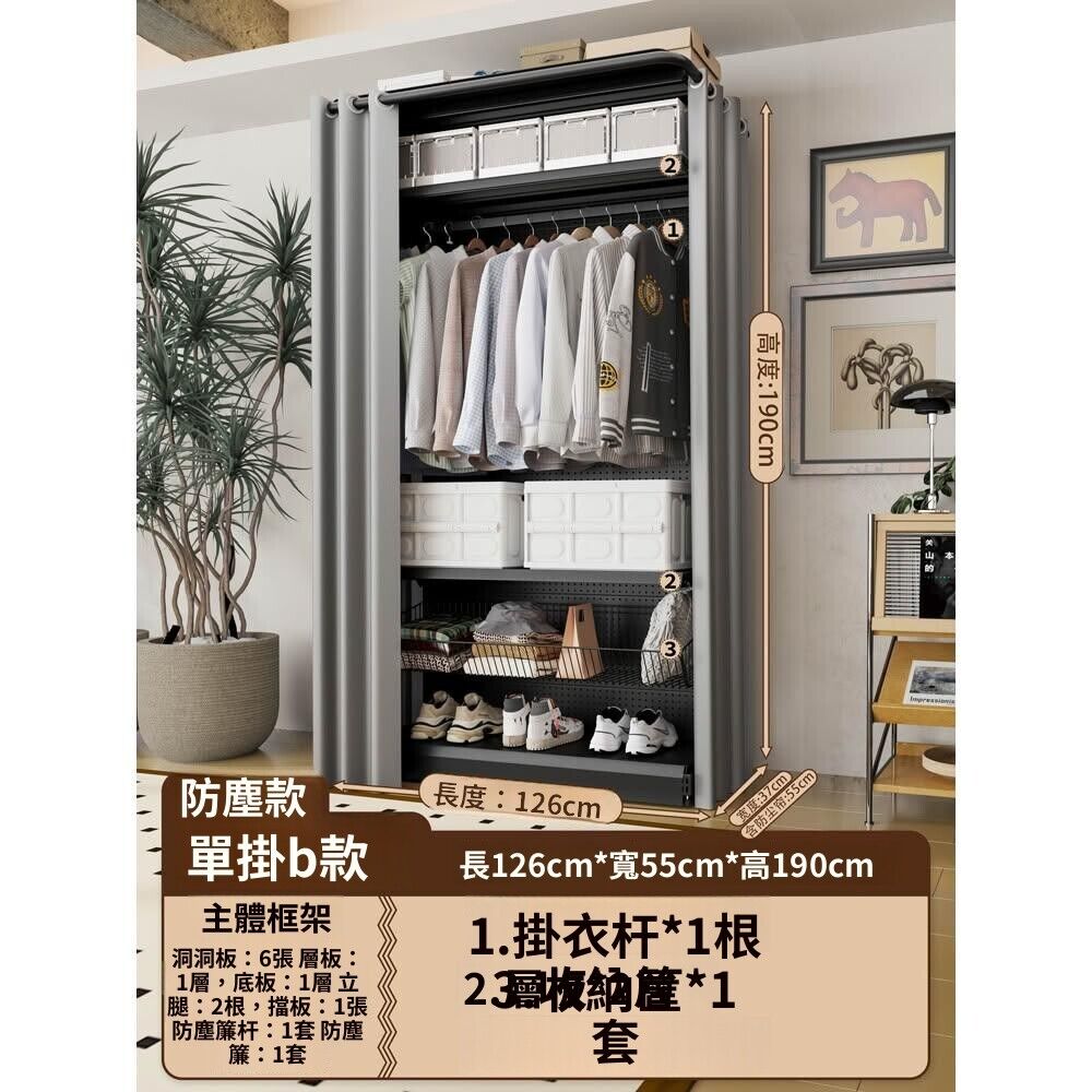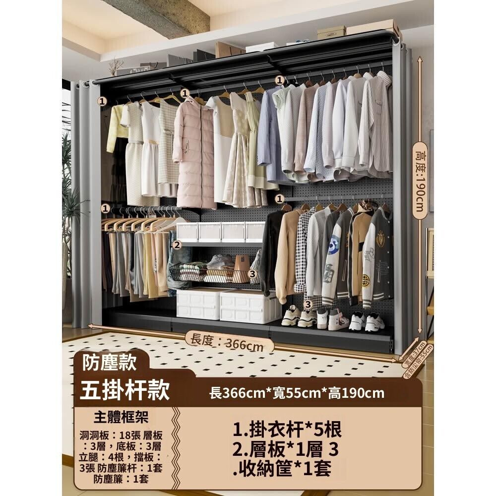 金屬衣櫃 洞洞板衣櫃 金屬衣帽間 洞洞板簡易組裝五金衣櫃金屬衣櫥開放式帶防塵簾開放式衣帽間少女
