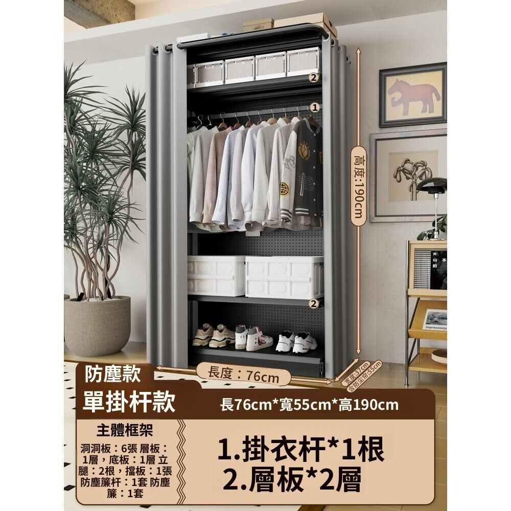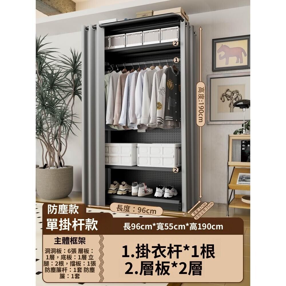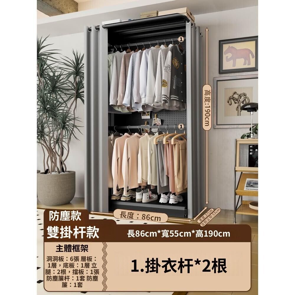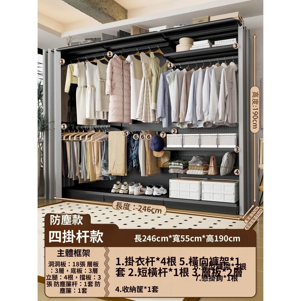 金屬衣櫃 洞洞板衣櫃 金屬衣帽間 洞洞板簡易組裝五金衣櫃金屬衣櫥開放式帶防塵簾開放式衣帽間少女