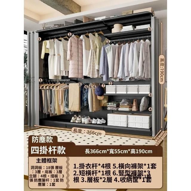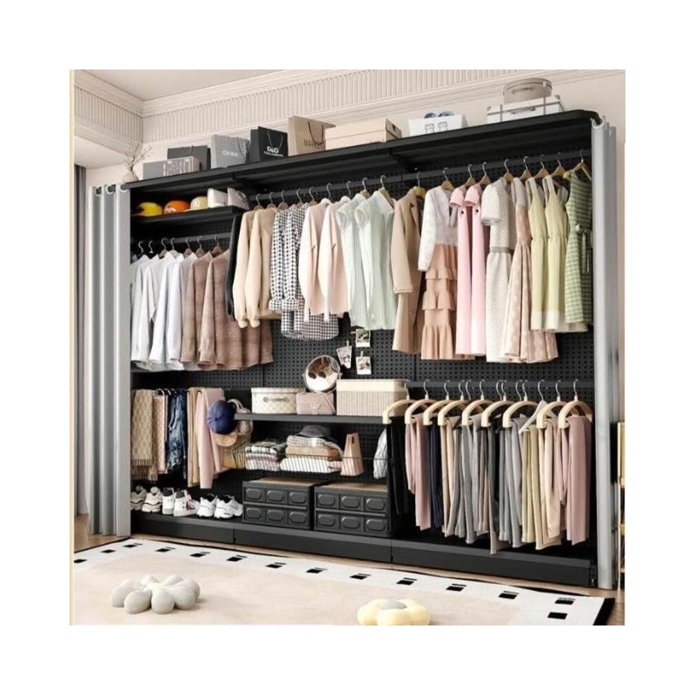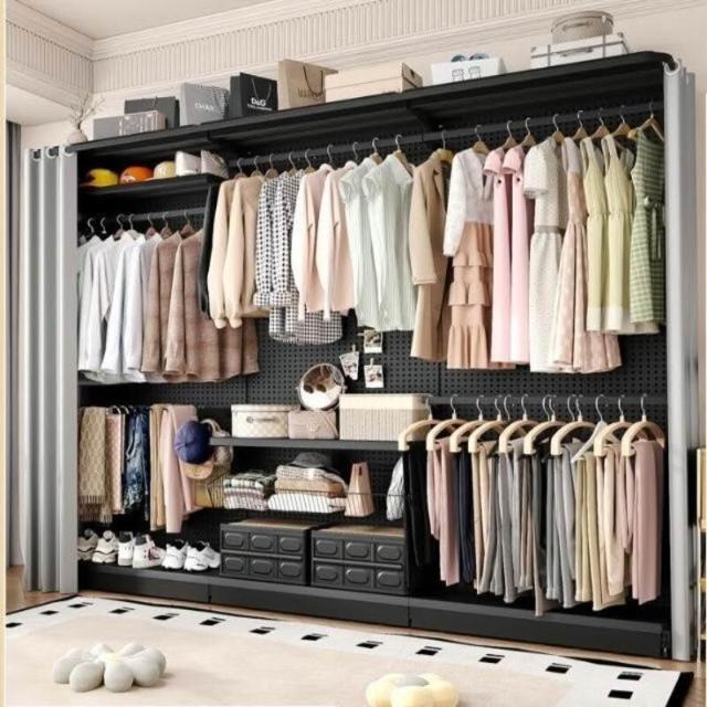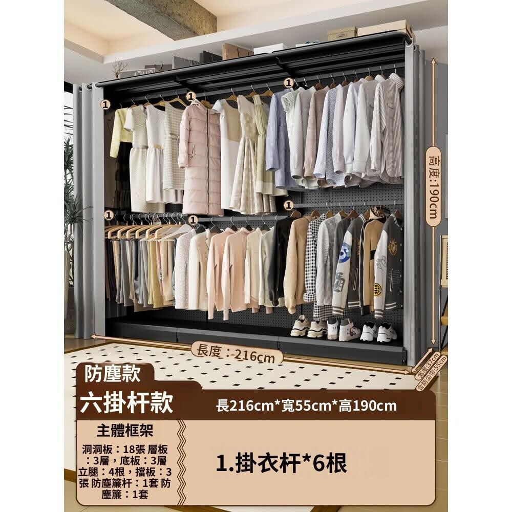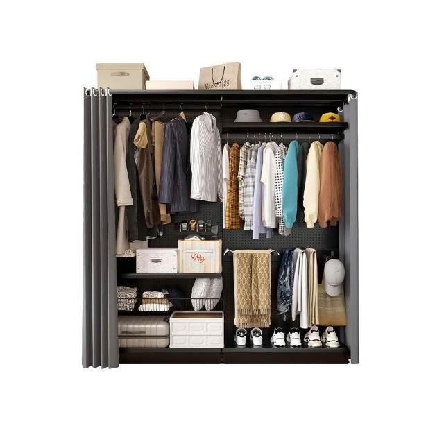 金屬衣櫃 洞洞板衣櫃 金屬衣帽間 洞洞板簡易組裝五金衣櫃金屬衣櫥開放式帶防塵簾開放式衣帽間少女