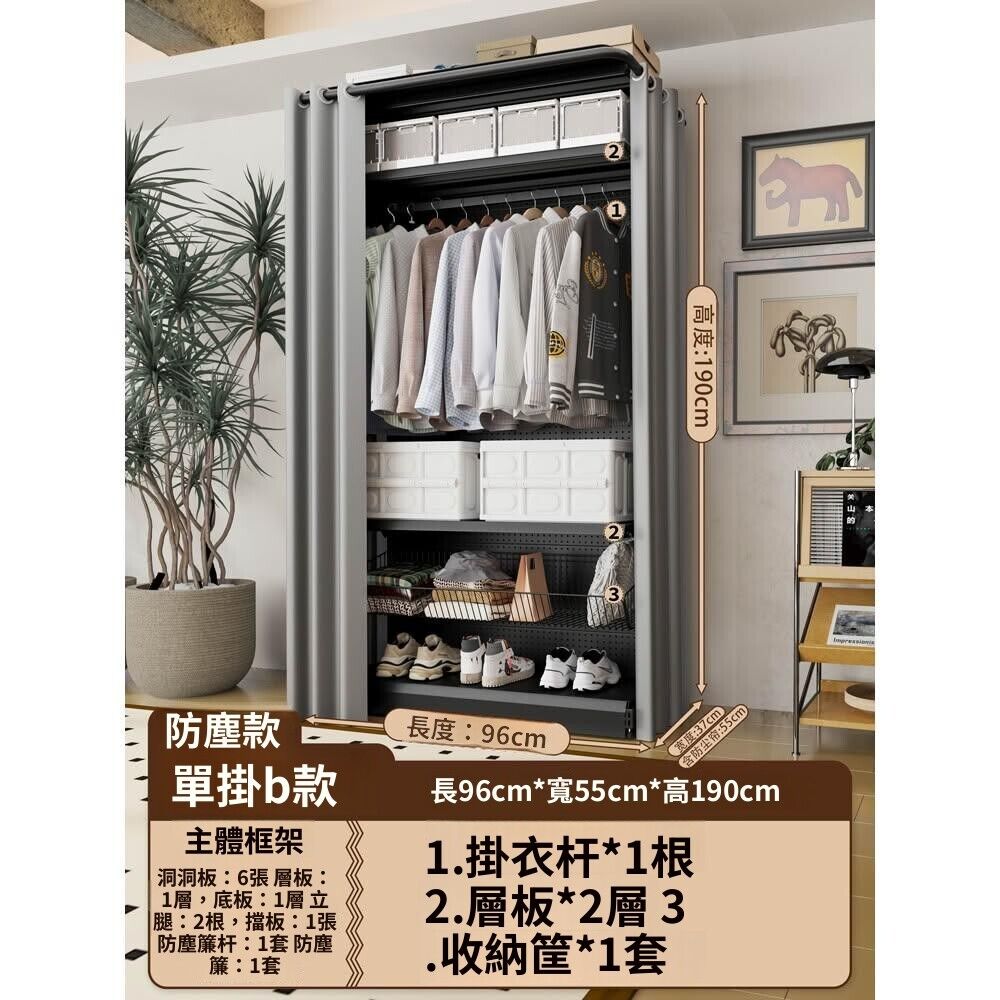 金屬衣櫃 洞洞板衣櫃 金屬衣帽間 洞洞板簡易組裝五金衣櫃金屬衣櫥開放式帶防塵簾開放式衣帽間少女