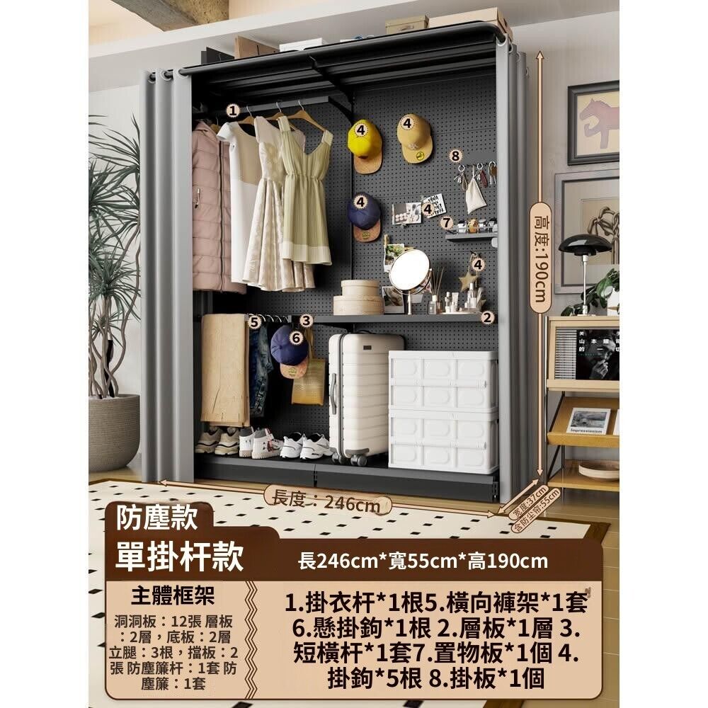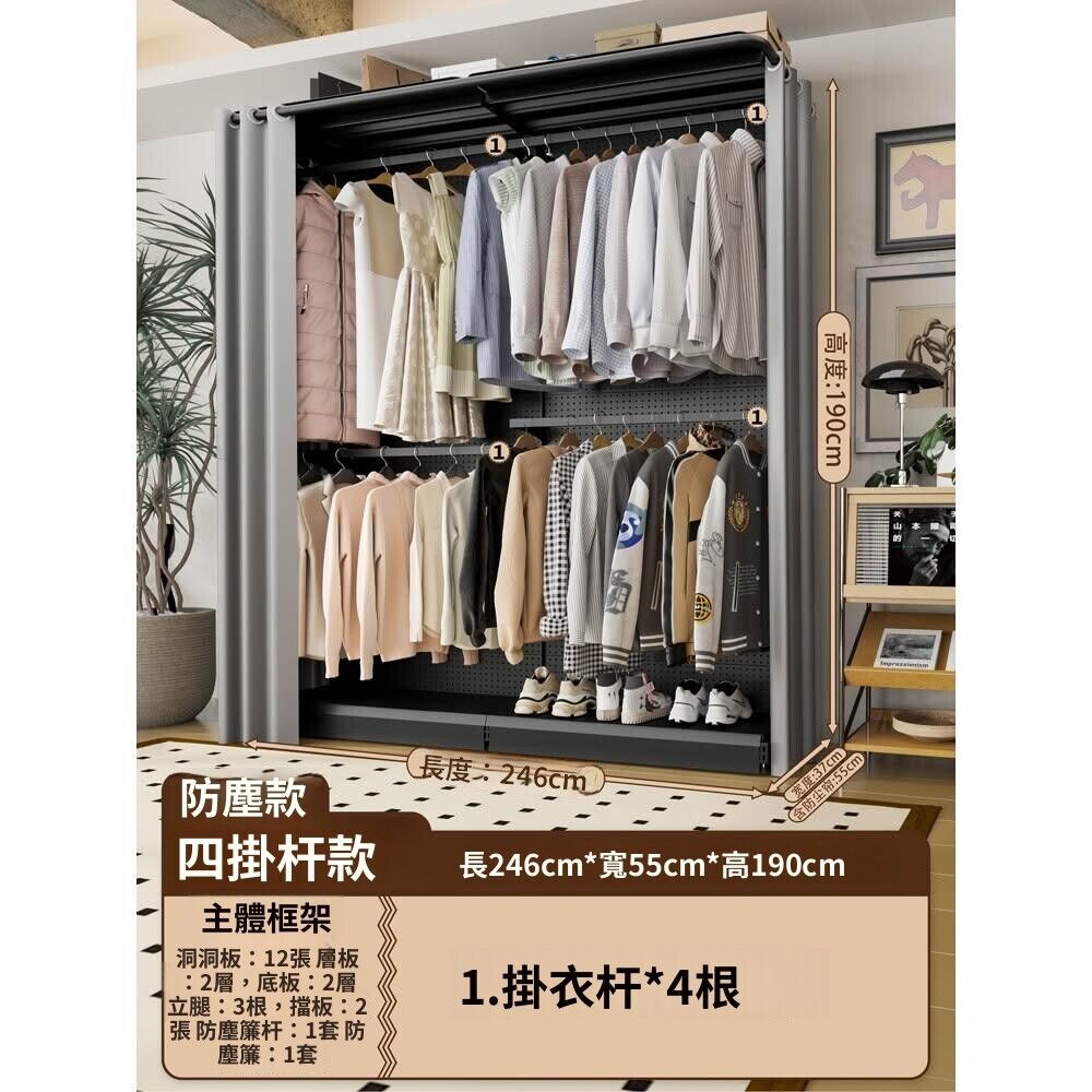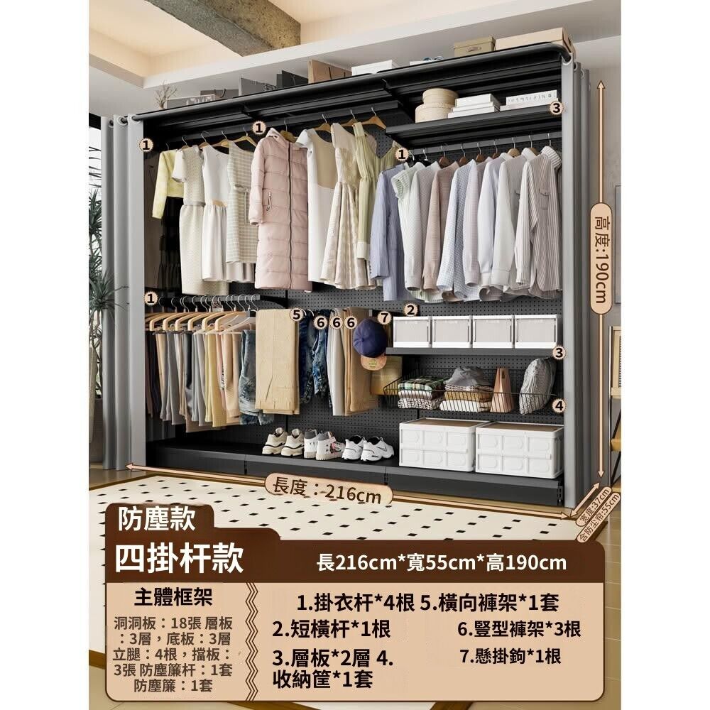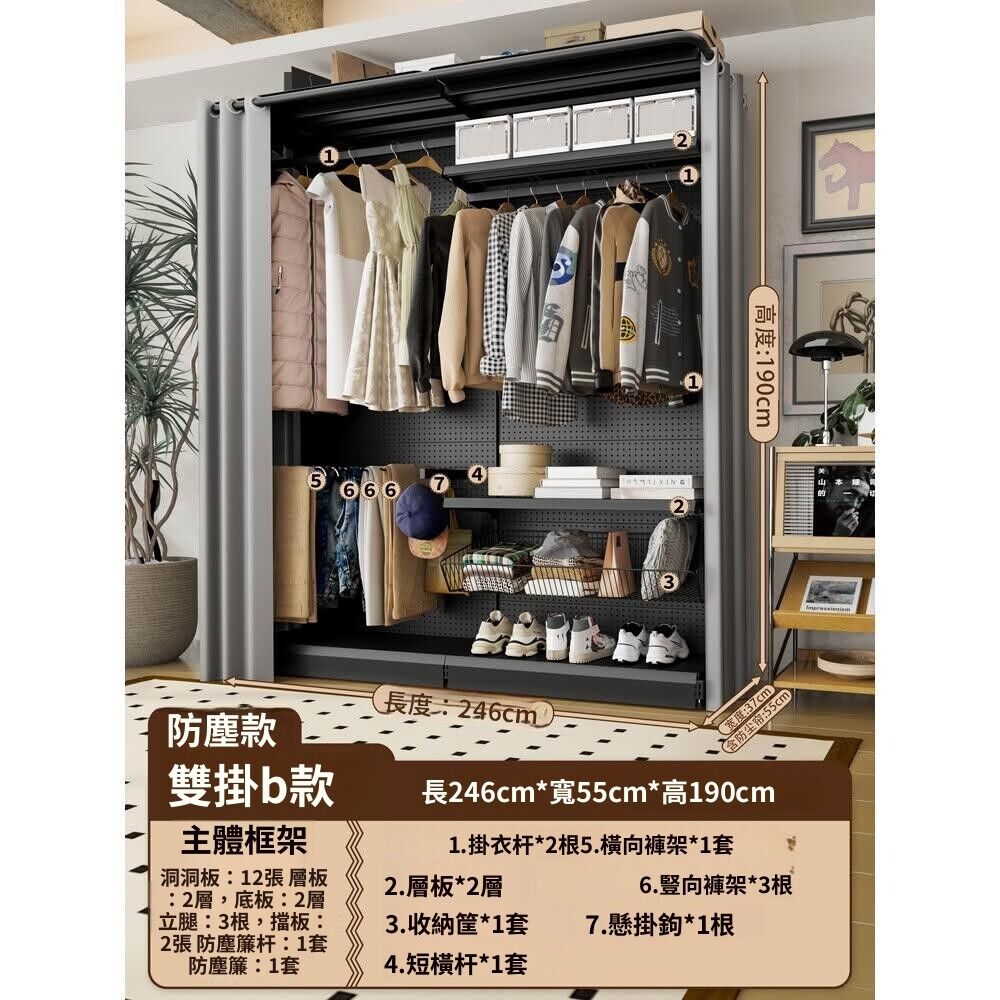 金屬衣櫃 洞洞板衣櫃 金屬衣帽間 洞洞板簡易組裝五金衣櫃金屬衣櫥開放式帶防塵簾開放式衣帽間少女