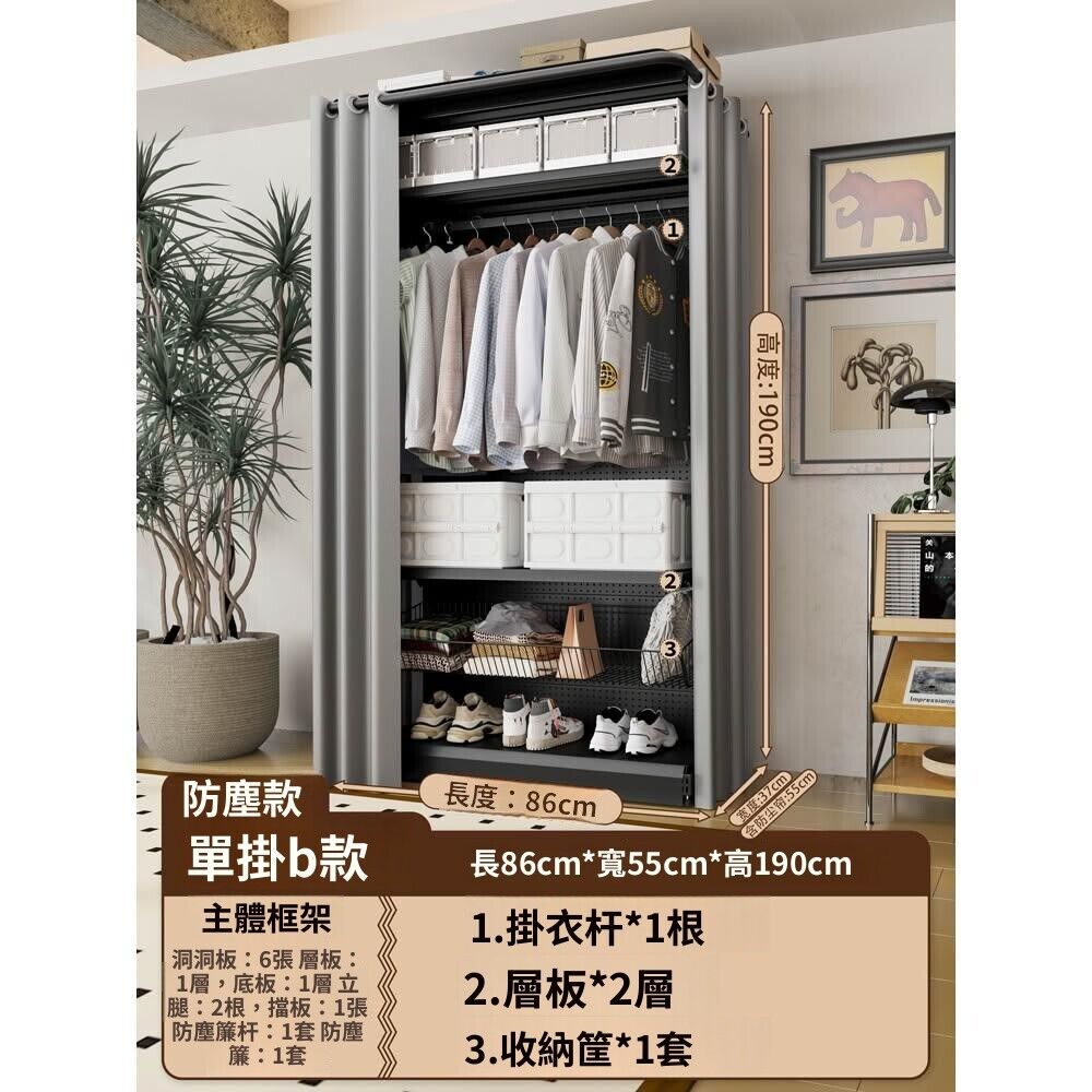 金屬衣櫃 洞洞板衣櫃 金屬衣帽間 洞洞板簡易組裝五金衣櫃金屬衣櫥開放式帶防塵簾開放式衣帽間少女
