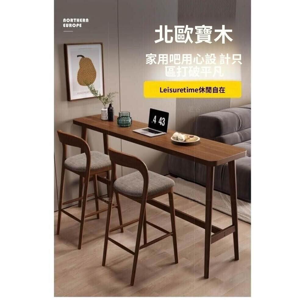 實木吧檯桌 長條桌 餐桌 窄長桌 实木吧台桌椅组合简约办公吧台式餐桌家用小户型客厅靠墙高脚桌子 陽臺/窗口高腳餐桌椅組合