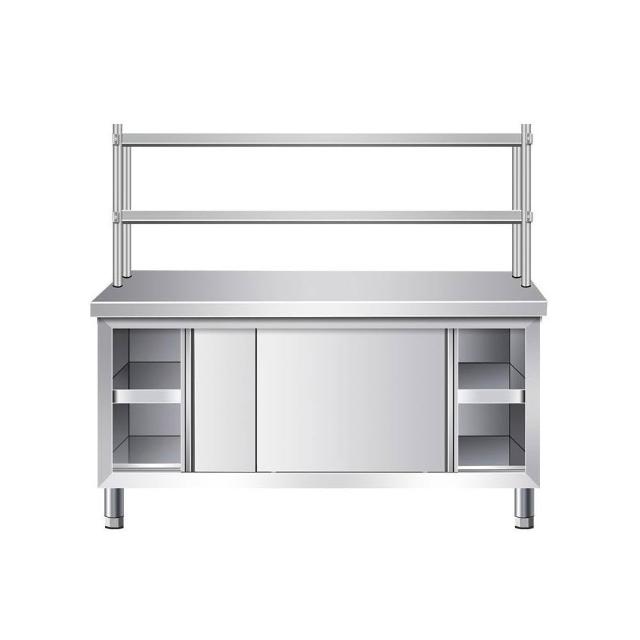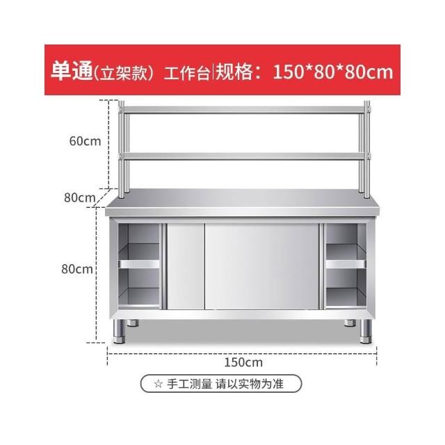 不銹鋼工作臺帶立架廚房操作臺儲物櫃切菜桌子商用臺麵案闆櫃烘焙 廚房收納櫃//餐櫃/切菜桌/中島電器櫃/收納櫃