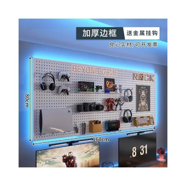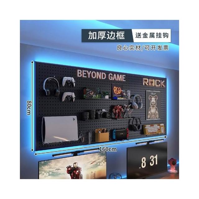 孔距16MM 可客製送掛鉤 電競房洞洞板 黑色牆上置物架 洞洞板 書桌電腦桌裝飾收納架 鐵藝裝飾架 展示架 洞洞板置物