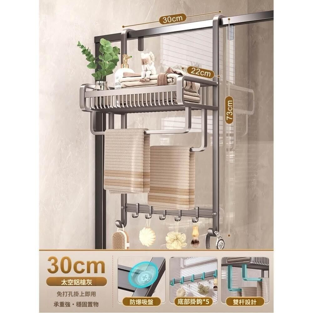 🔥臺灣熱銷✨免運 浴室毛巾架免打孔厠所浴巾架毛巾桿衛生間置物架淋浴房玻璃門掛架