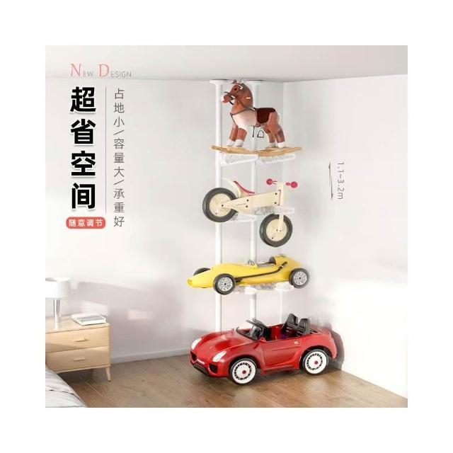 ~ 頂天立地免打孔兒童車置物架 客廳多層滑板自行車寶寶玩具車收納架