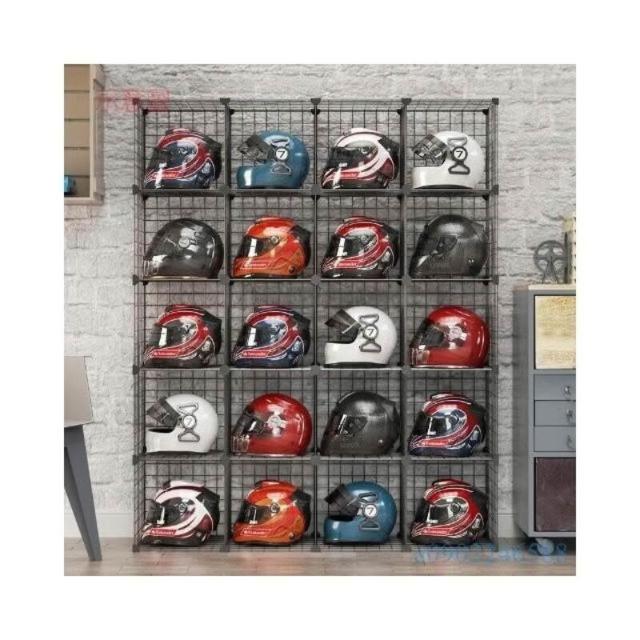~安全帽收納 機車頭盔收納 头盔展示架家用 帽子架 铁艺安全帽陈列柜 机车摩托车头盔摆放收纳架