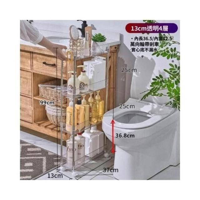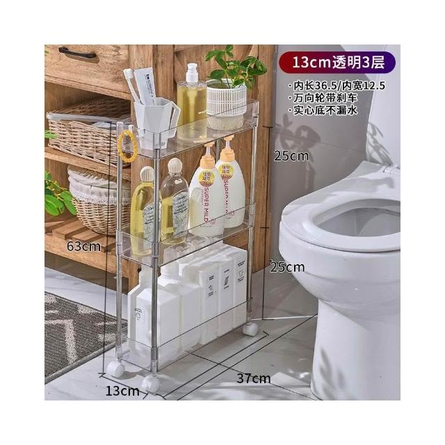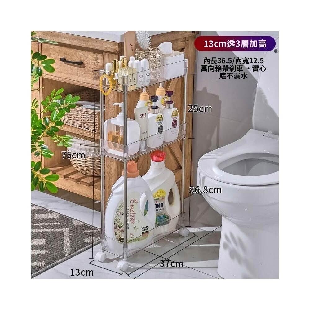 13/15/20cm衛生間透明夾縫隙置物架 落地廚房浴室門后收納櫃小推車 窄縫收納架 置物架 縫隙收納架 移動置物架