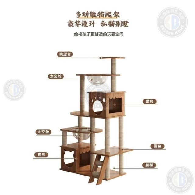 猫爬架大型通用跳臺抓柱太空艙通天木制猫咪別墅一體架子猫窩玩具