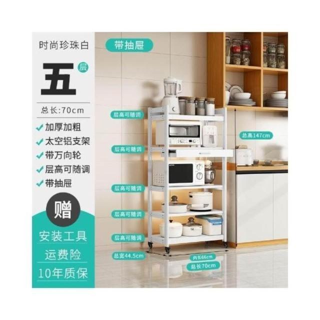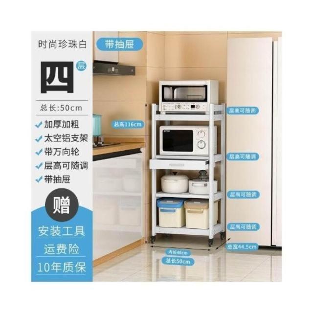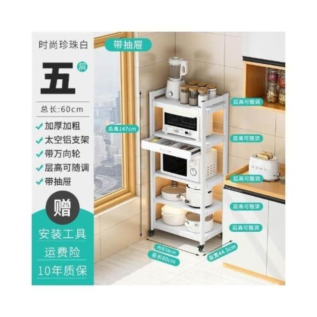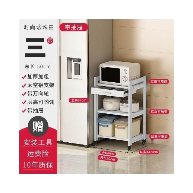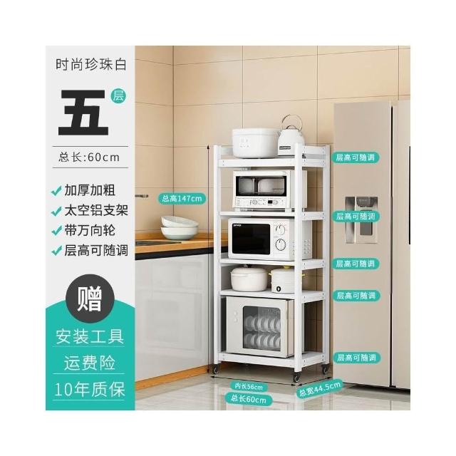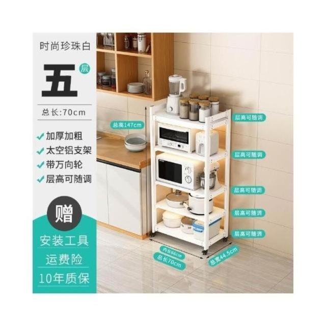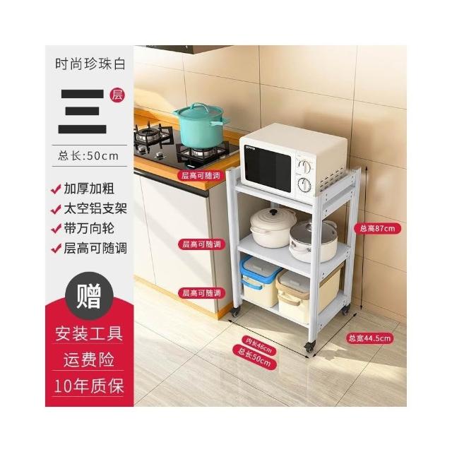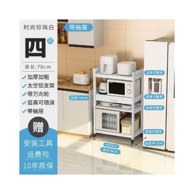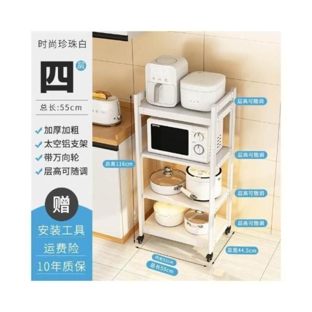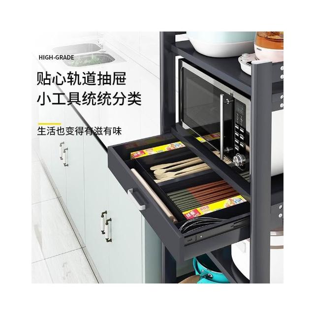 太空铝微波炉置物架 落地多层多功能锅架 厨房电器柜 家电烤箱收纳架 廚房落地式收納架 可抽拉式廚房層架 廚房置物架