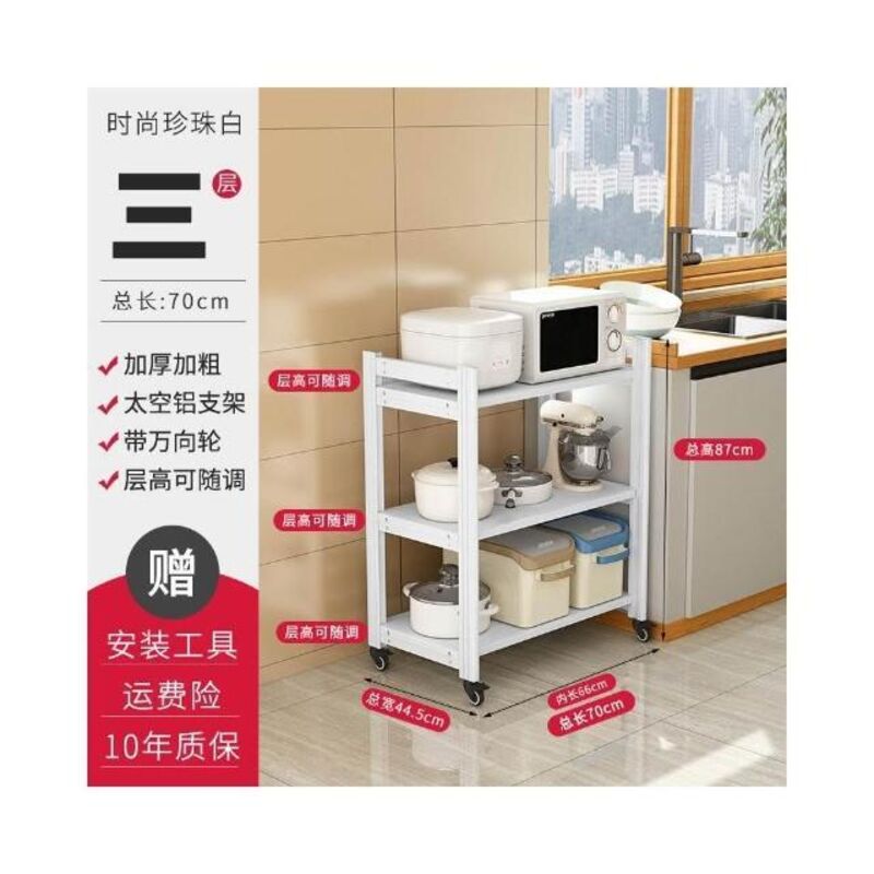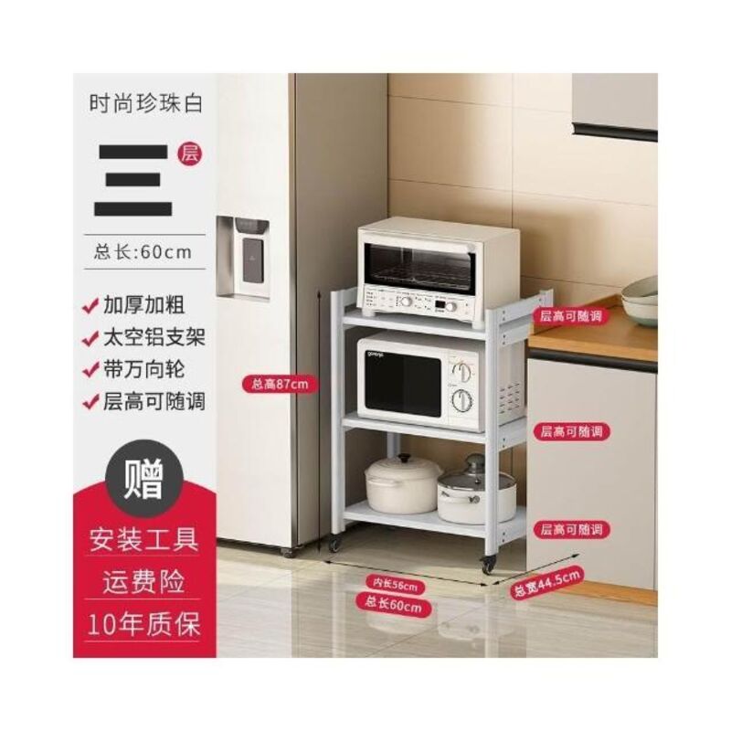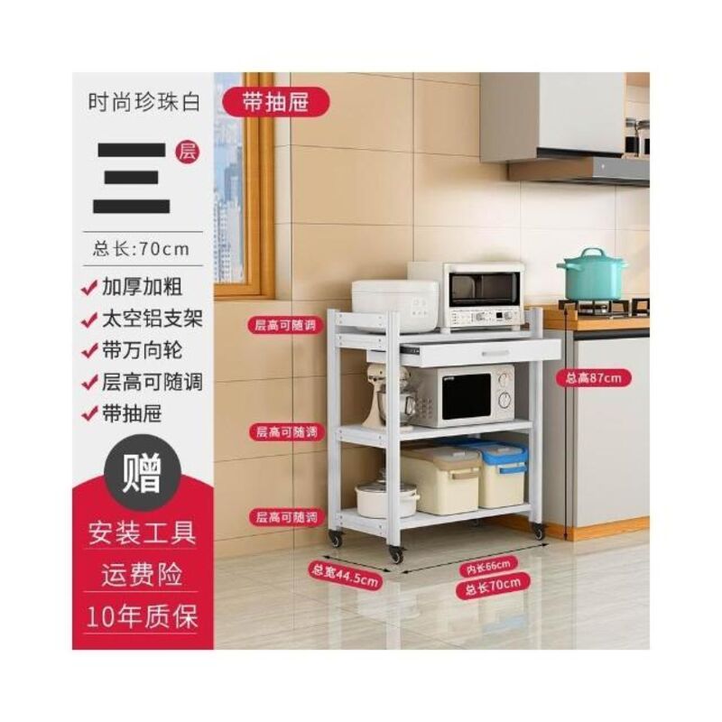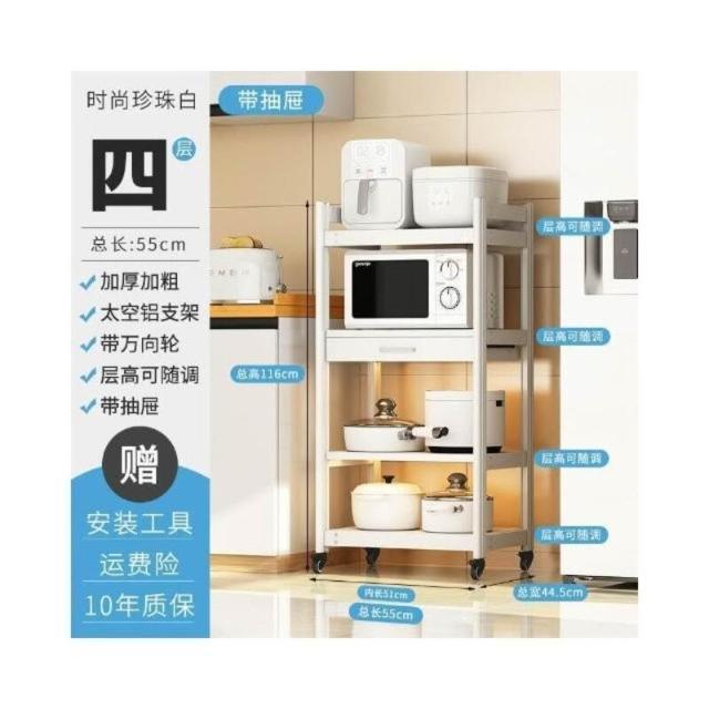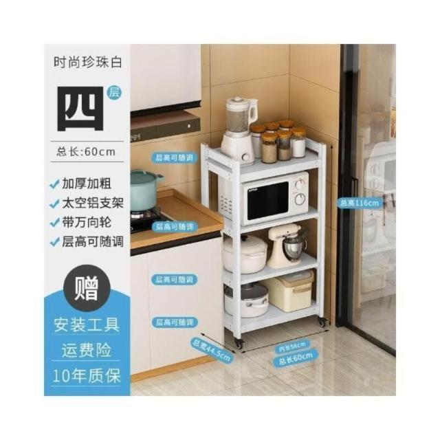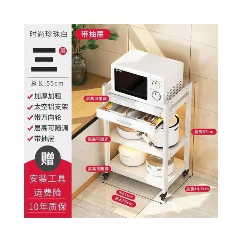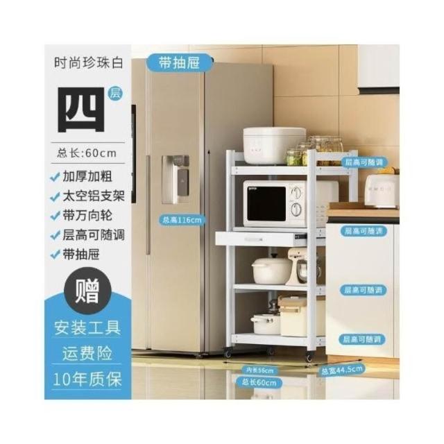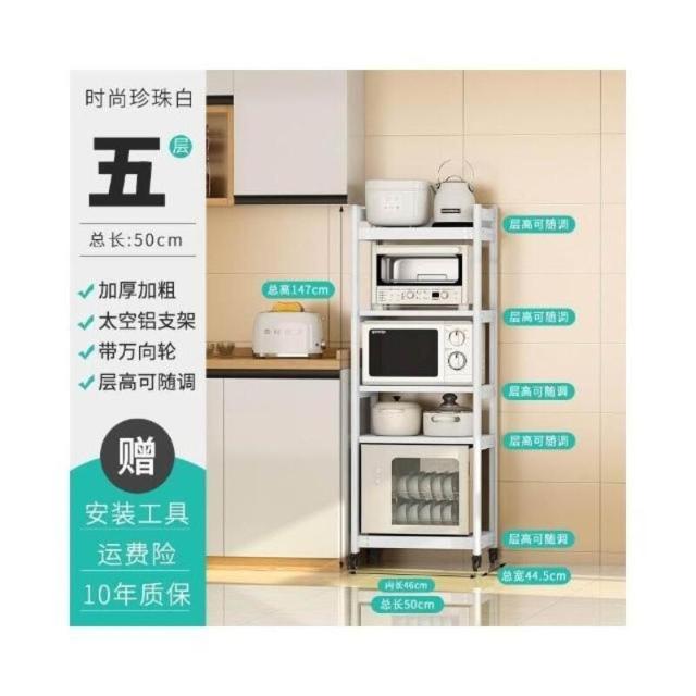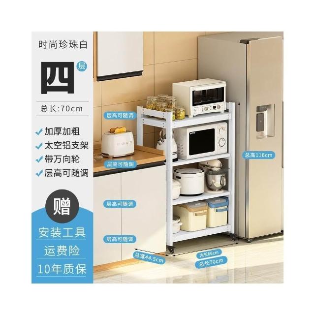 太空铝微波炉置物架 落地多层多功能锅架 厨房电器柜 家电烤箱收纳架 廚房落地式收納架 可抽拉式廚房層架 廚房置物架