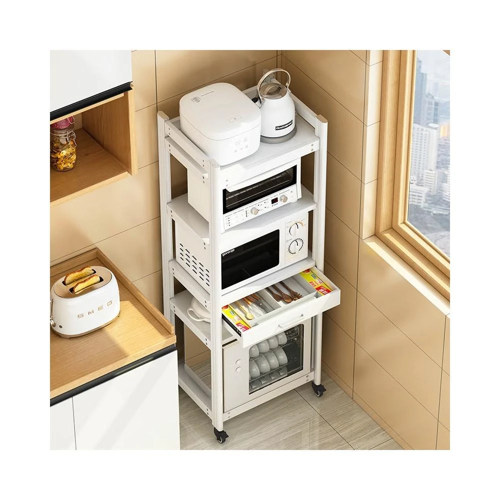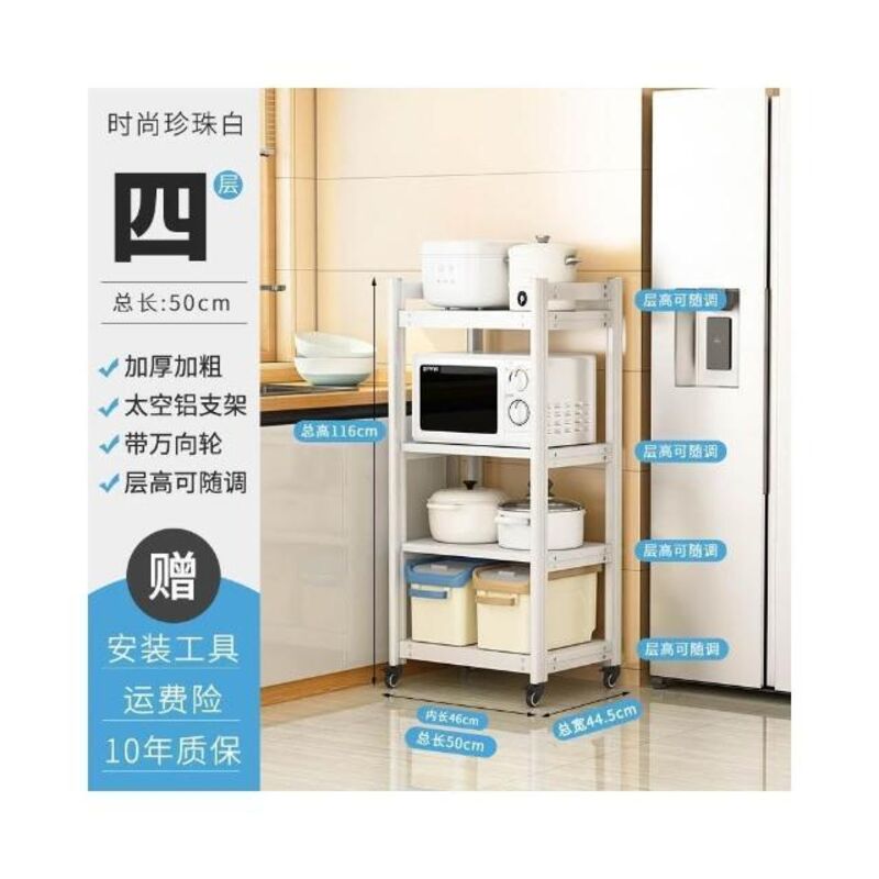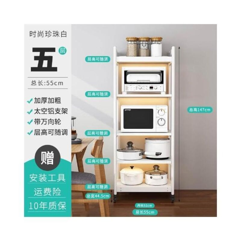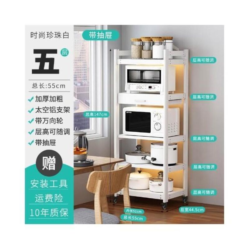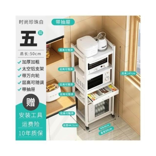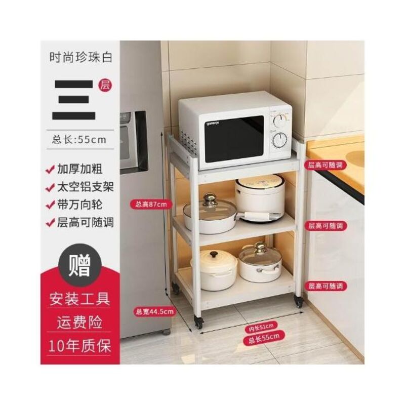 太空铝微波炉置物架 落地多层多功能锅架 厨房电器柜 家电烤箱收纳架 廚房落地式收納架 可抽拉式廚房層架 廚房置物架